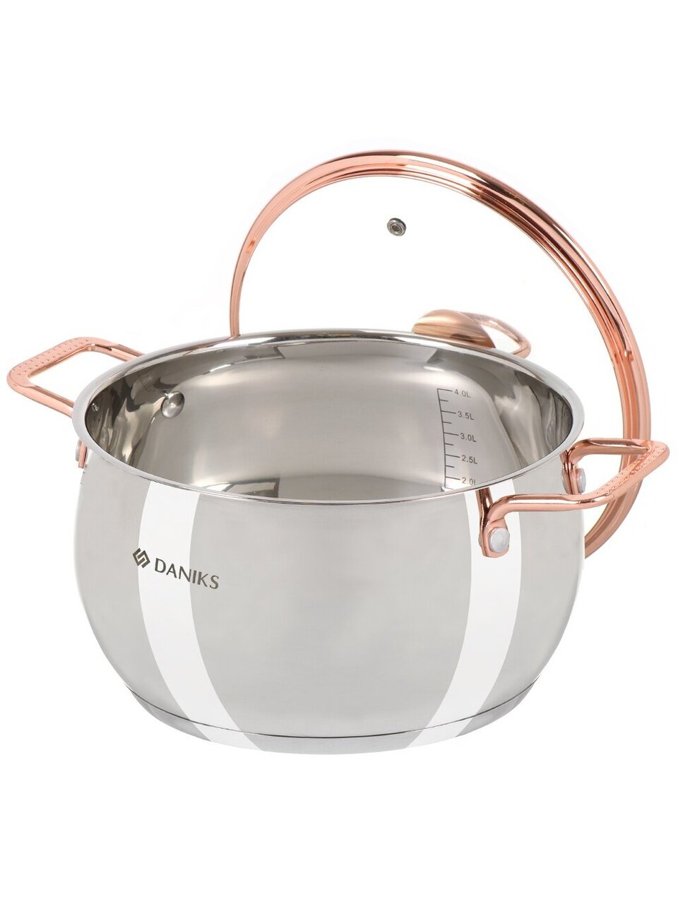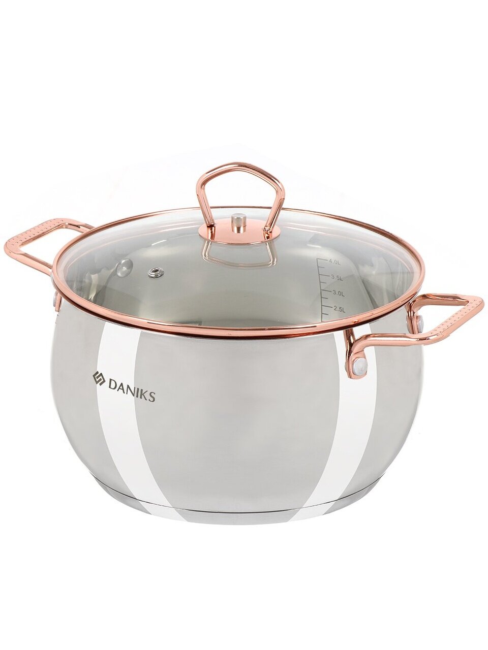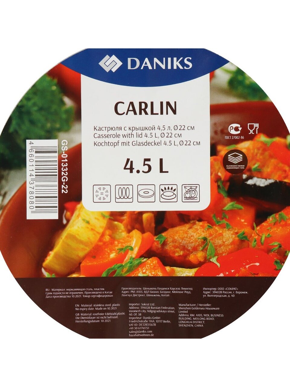 Вы можете приобрести «Кастрюля нержавеющая сталь, 4.5 л, крышка стекло, Daniks, Карлин, GS-01332G-22, индукция» и другие товары в нашем интернет-магазине в Брянске по низким ценам и с бесплатным самовывозом.