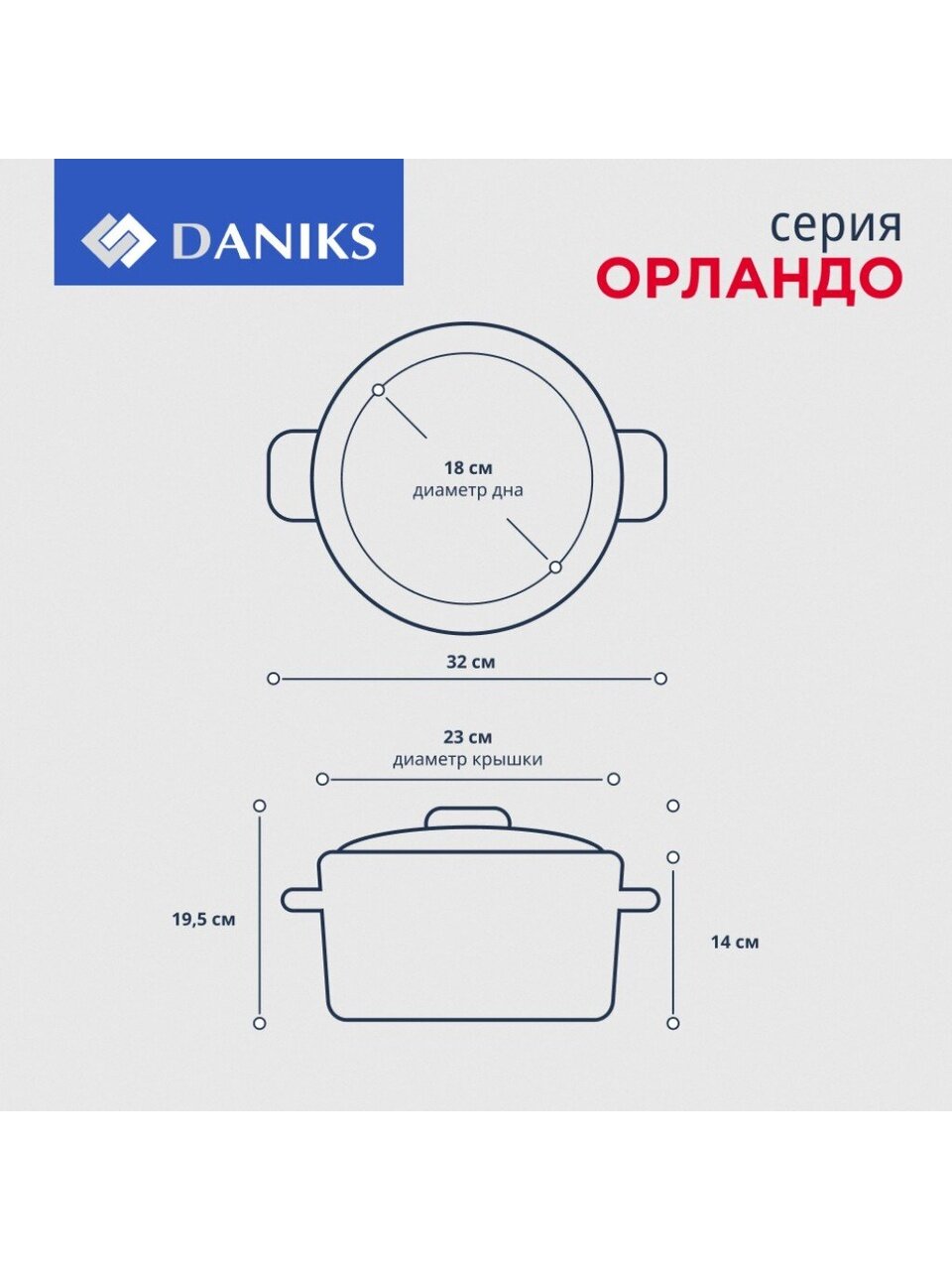 Закажите кастрюлю Daniks Орландо 4.9 л прямо сейчас — получите надежную посуду с гарантией 12 месяцев и выгодной ценой для дома, дачи или в подарок.