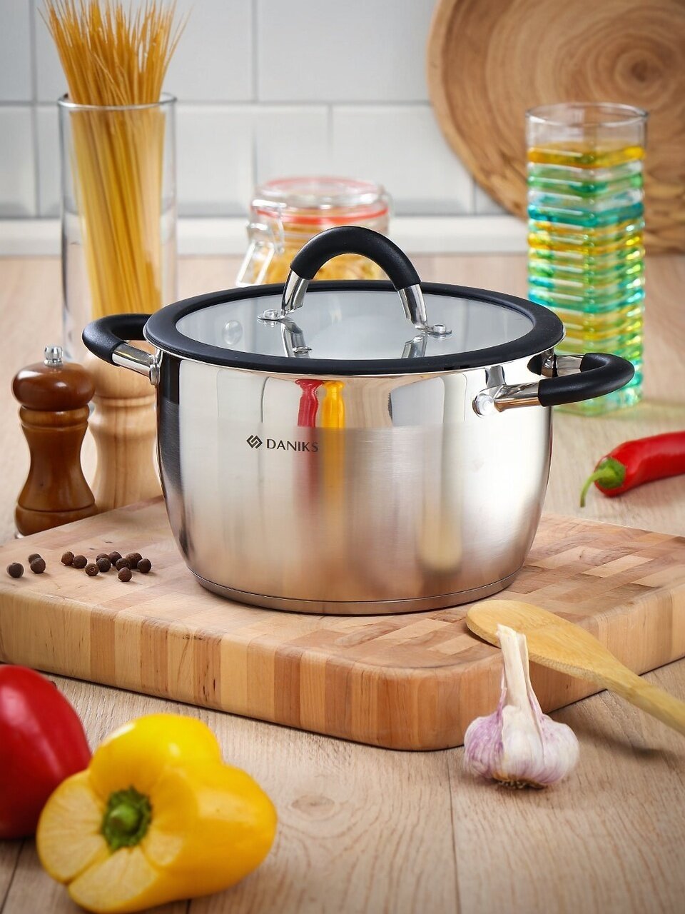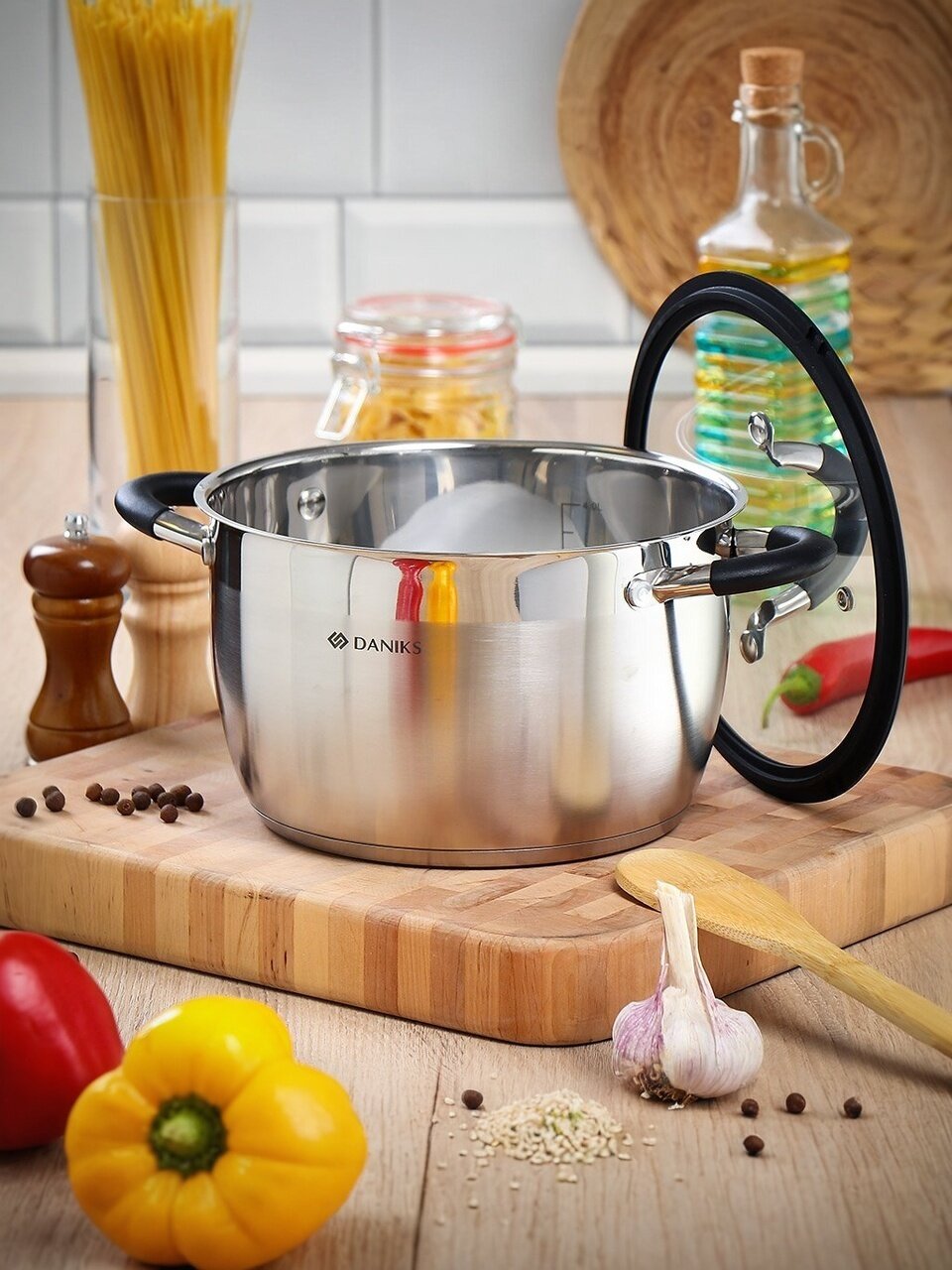 Кастрюля Daniks Орландо 4.9 л из нержавеющей стали с капсульным дном: универсальный выбор для индукции, газовых и электрических плит. Идеально для дома и дачи.