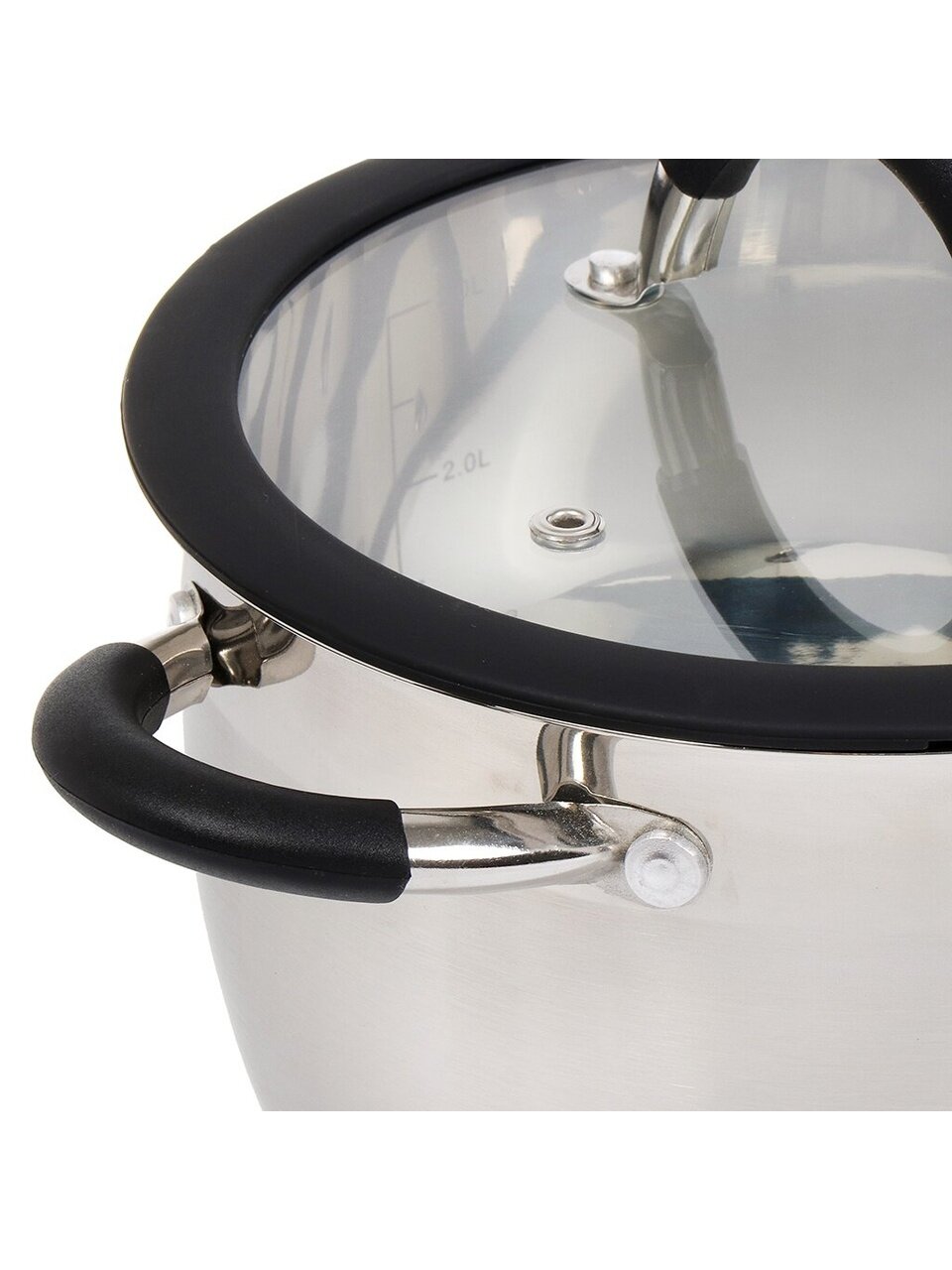 Кастрюля объемом 4.9 л с мерной шкалой — оптимальный вариант для приготовления супов, гарниров, варки овощей или компотов на семью 3-5 человек. Прозрачная крышка с выпускным клапаном защищает от закипания и позволяет контролировать процесс без потери тепла. Силиконовые ручки гарантируют безопасный захват. Можно мыть в посудомоечной машине, что экономит время на уходе. Вопросы «подходит ли для индукции», «можно ли использовать на даче» — все ответы положительные: универсальная совместимость с плитами и прочная конструкция делают модель выгодным вложением.