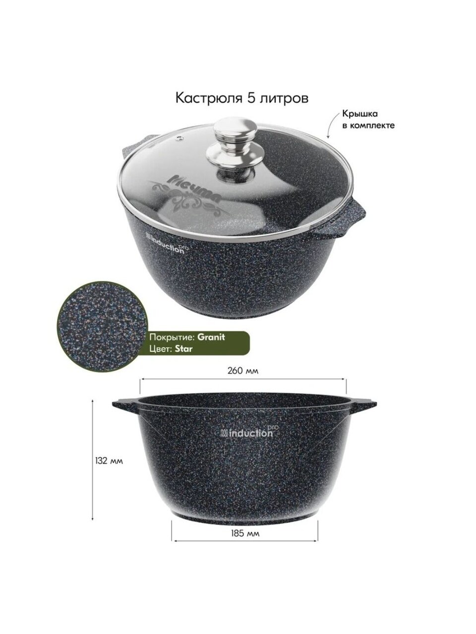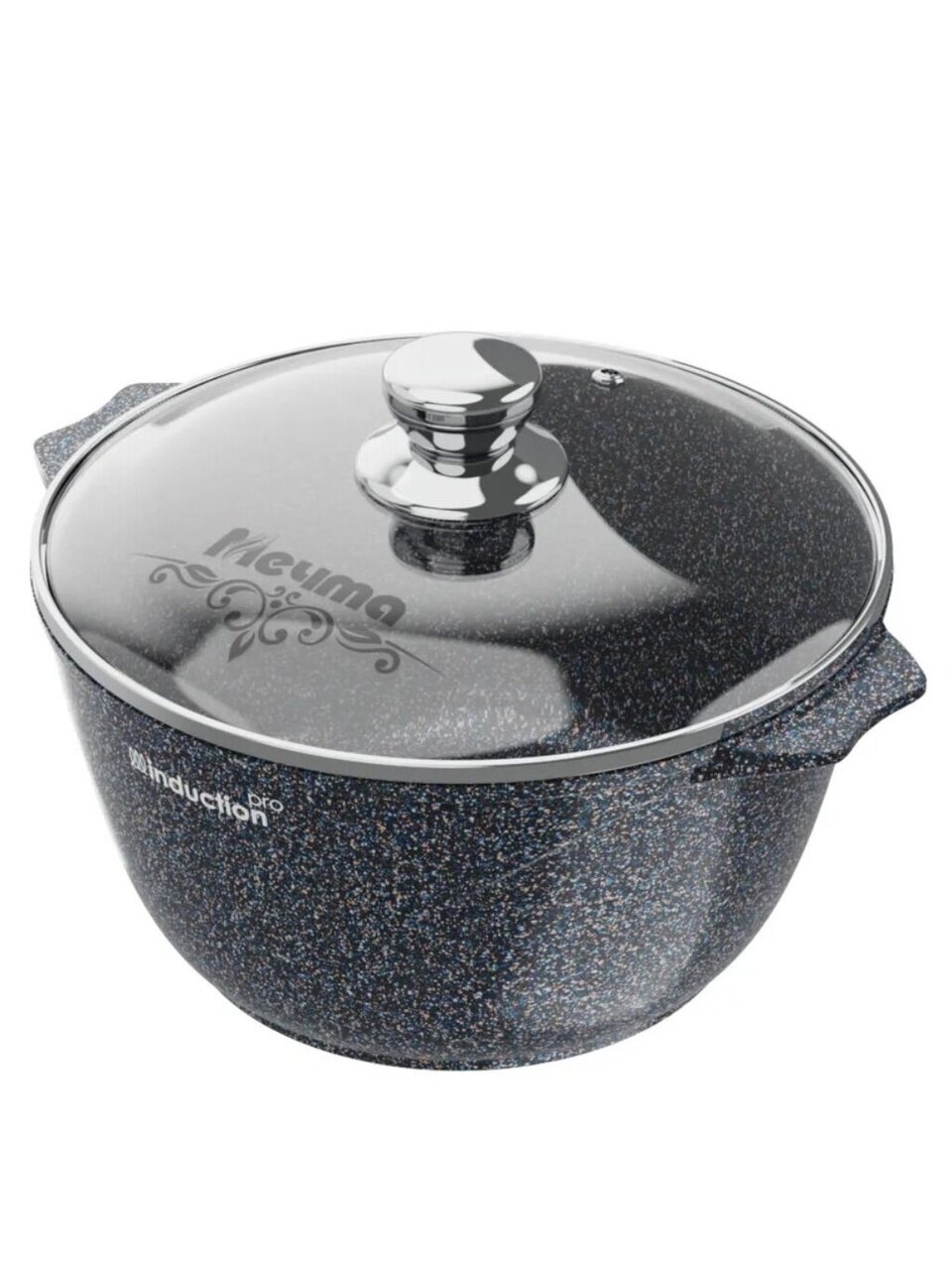 Кастрюля 5 л Мечта Гранит star Induction — антипригарное покрытие, стеклянная крышка, подходит для индукции. Универсальное решение для дома и дачи.