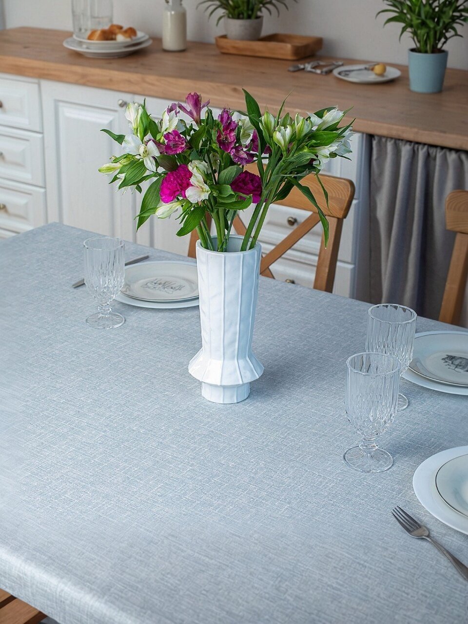 - универсальность: размер 1.4х20 м позволяет использовать клеенку как для больших столов, так и для их индивидуальной нарезки под нужные размеры;