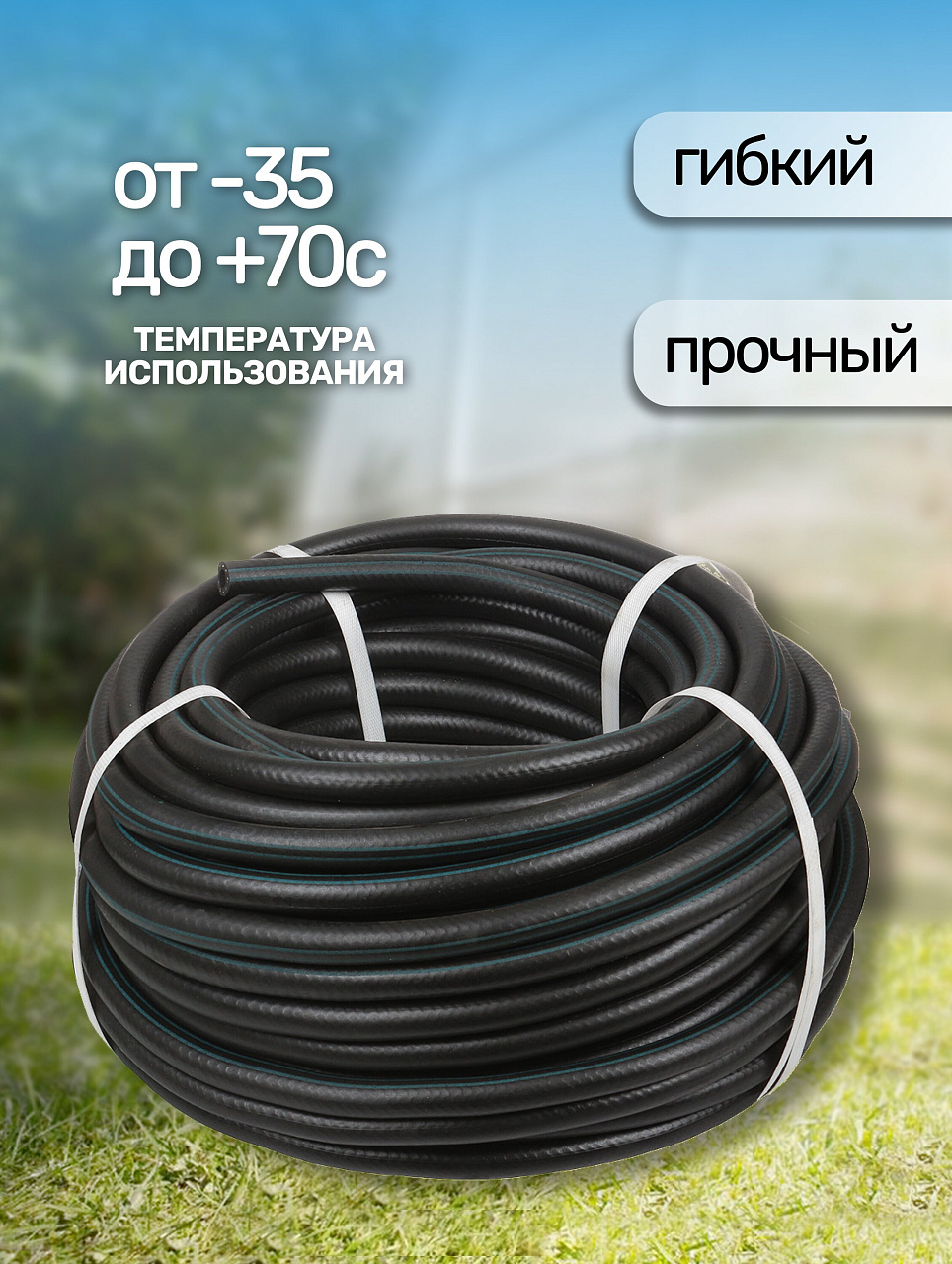 - удобство: длина 50 метров позволяет использовать шланг на больших площадях без необходимости частой перестановки оборудования