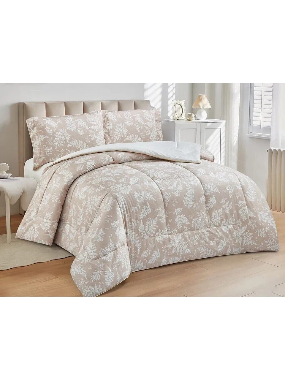 Часто спрашивают, чем этот комплект отличается от аналогов. Во-первых, в нем уже есть одеяло — не нужно подбирать его отдельно. Во-вторых, сатин Cleo плотный, но дышащий, что важно для комфортного сна круглый год. Для тех, кто выбирает подарок, важен и внешний вид: комплект упакован в подарочную коробку, а нейтральный бежевый цвет и стильный рисунок «листья» впишутся в любой интерьер. Если вы ищете, как выбрать постельное белье для гостевой комнаты или что лучше взять для дачи, этот набор станет универсальным решением.