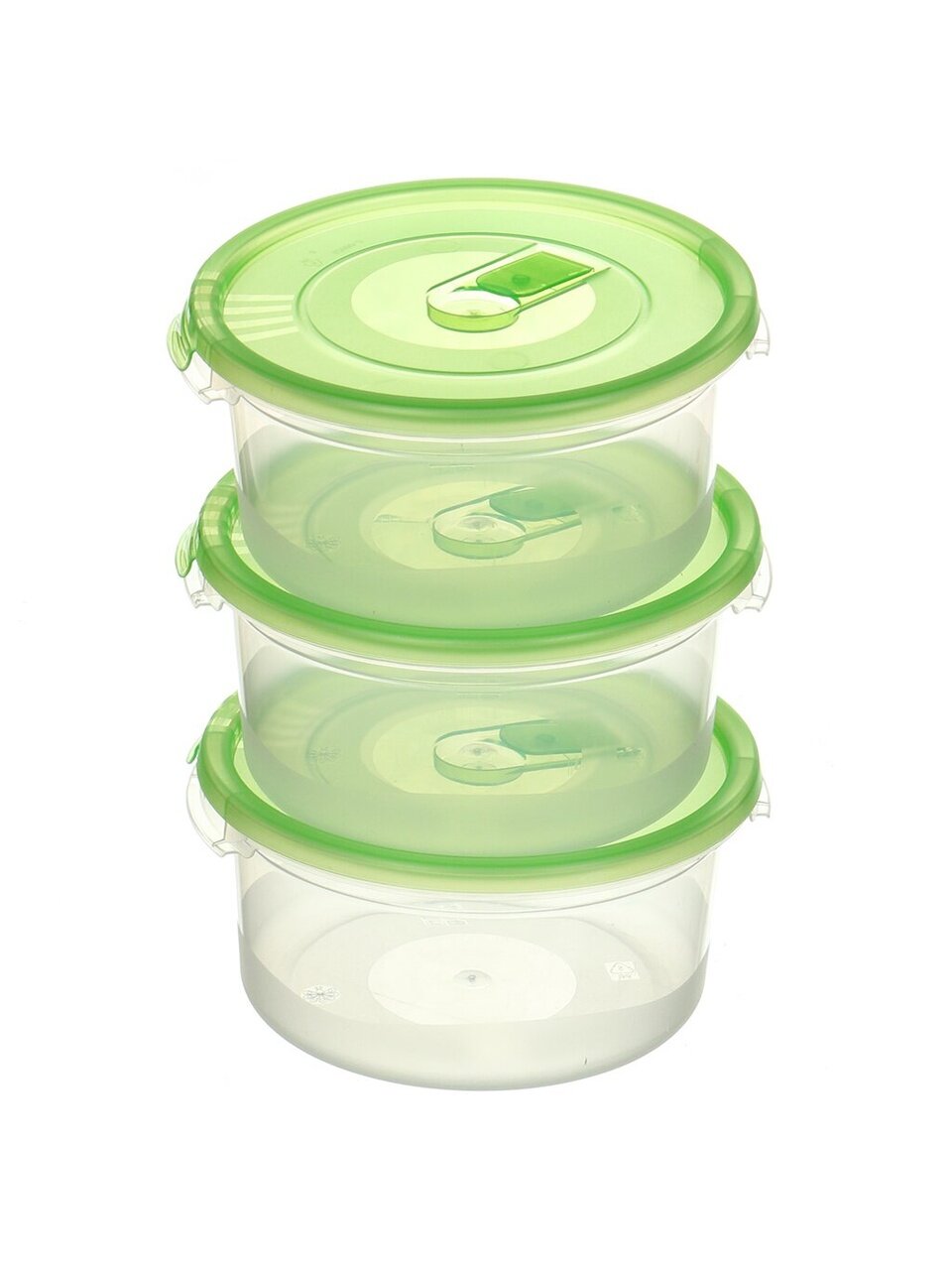 Каждый контейнер рассчитан на 0.4 литра, высота — 7 см, форма — круглая. В наборе 3 штуки разных цветов.