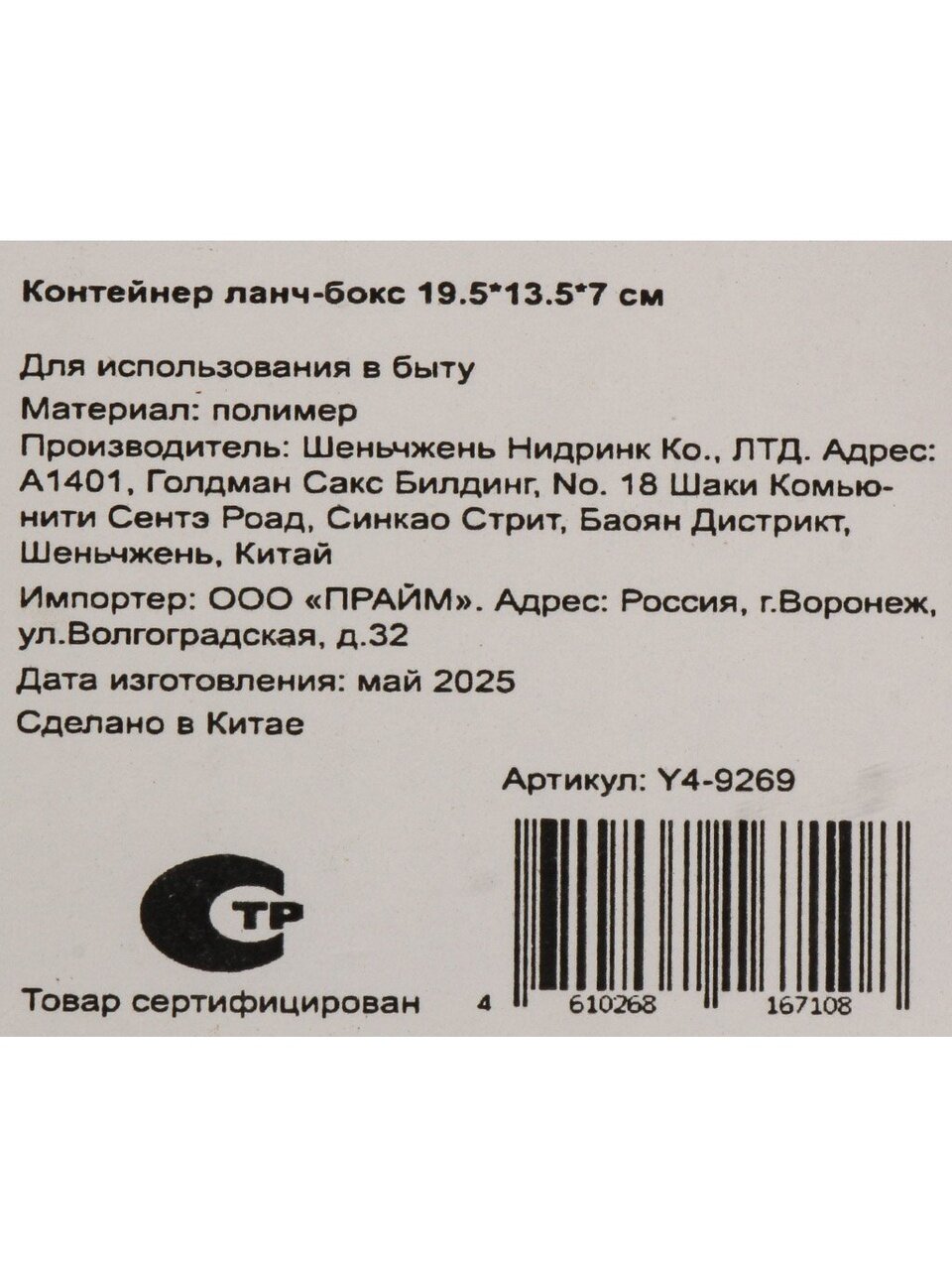Закажите контейнер ланч-бокс Y4-9269 прямо сейчас — получите удобство хранения, стильный дизайн и выгодную цену. Гарантия соответствия и быстрая доставка по России.