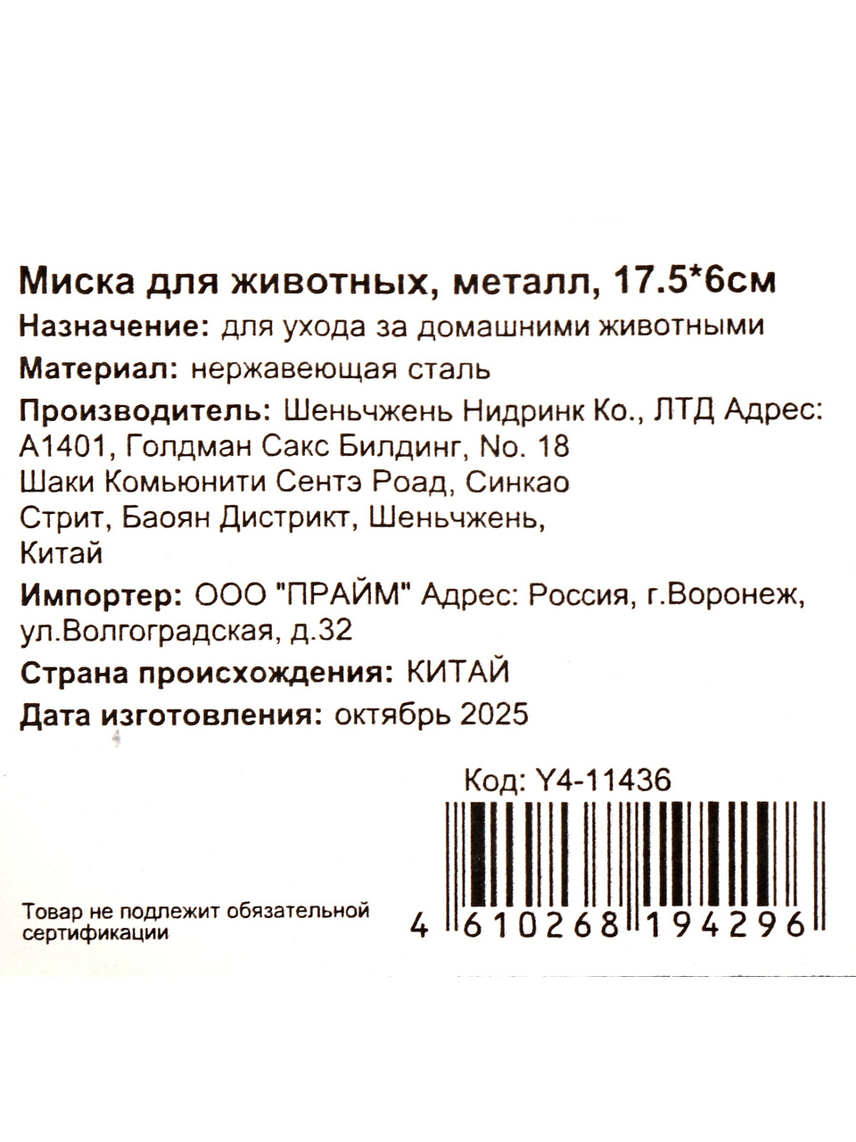 Вы можете приобрести «Миска для животных Y4-11436, металл, 17.5Х6» и другие товары в нашем интернет-магазине в Ярославле по низким ценам и с бесплатным самовывозом.