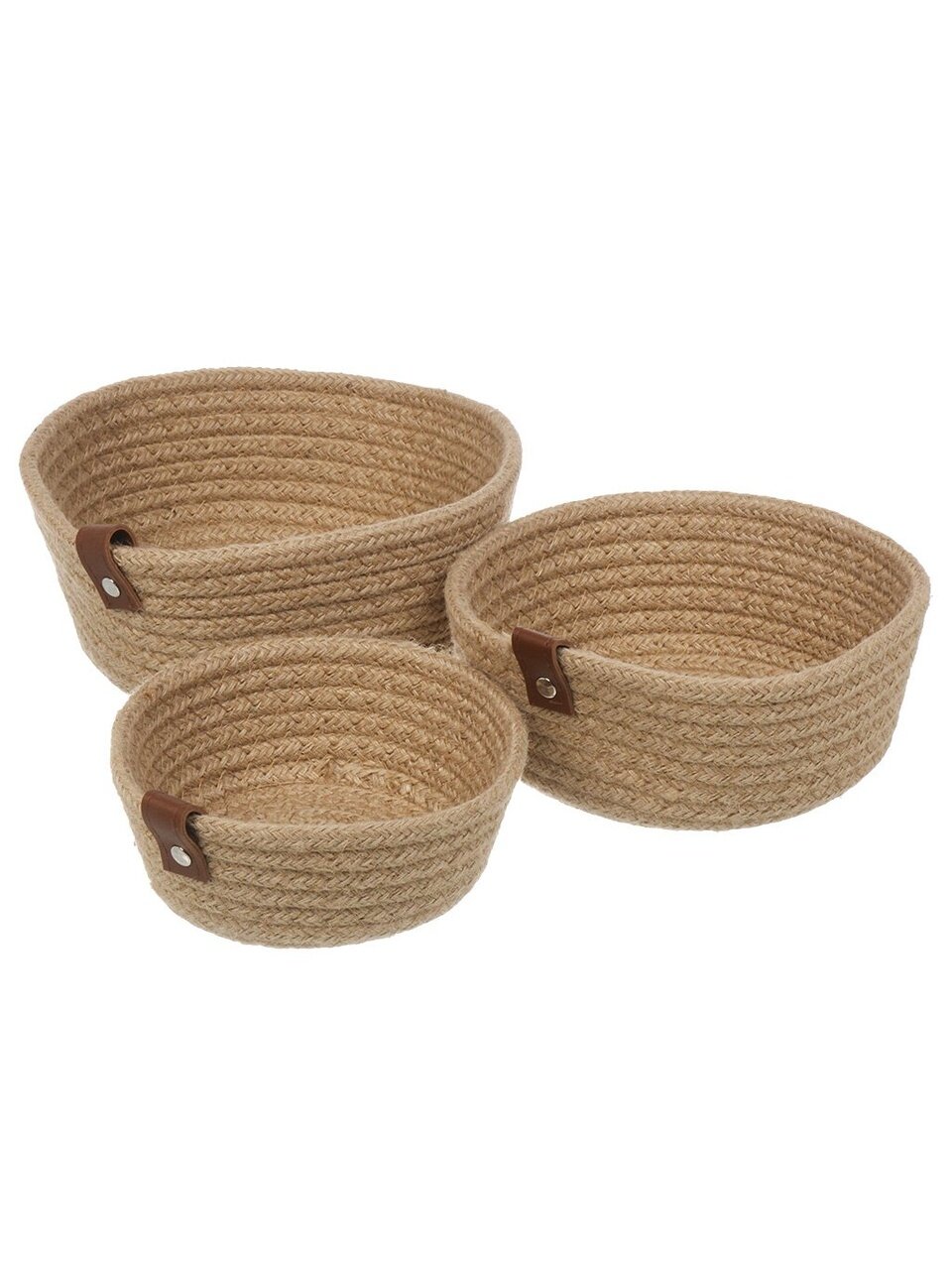 Эти плетеные корзины созданы для тех, кто ценит порядок и эстетику. Бежевый цвет корзин гармонично впишется в любой интерьер, добавляя ему нотку уюта и элегантности. Несмотря на отсутствие крышек, корзины сохраняют аккуратный вид и обеспечивают легкий доступ к содержимому. Их круглая форма и отсутствие ручек делают их идеальными для размещения в любом уголке вашего дома.