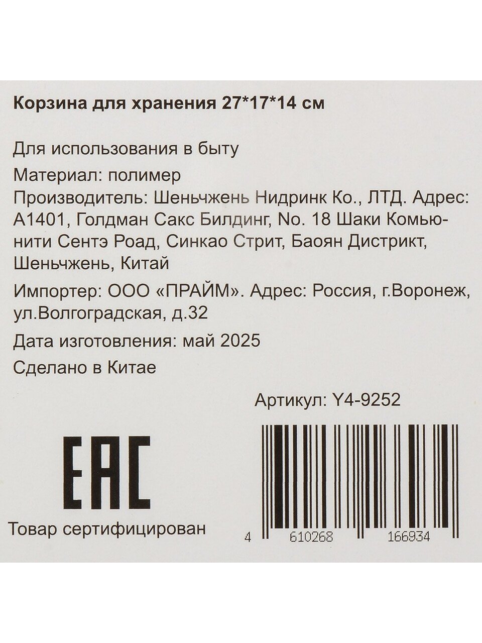 Вы можете приобрести «Корзина для хранения, 27х17х14 см, прямоугольная, пластик, Y4-9252» и другие товары в нашем интернет-магазине в Орле по низким ценам и с бесплатным самовывозом.