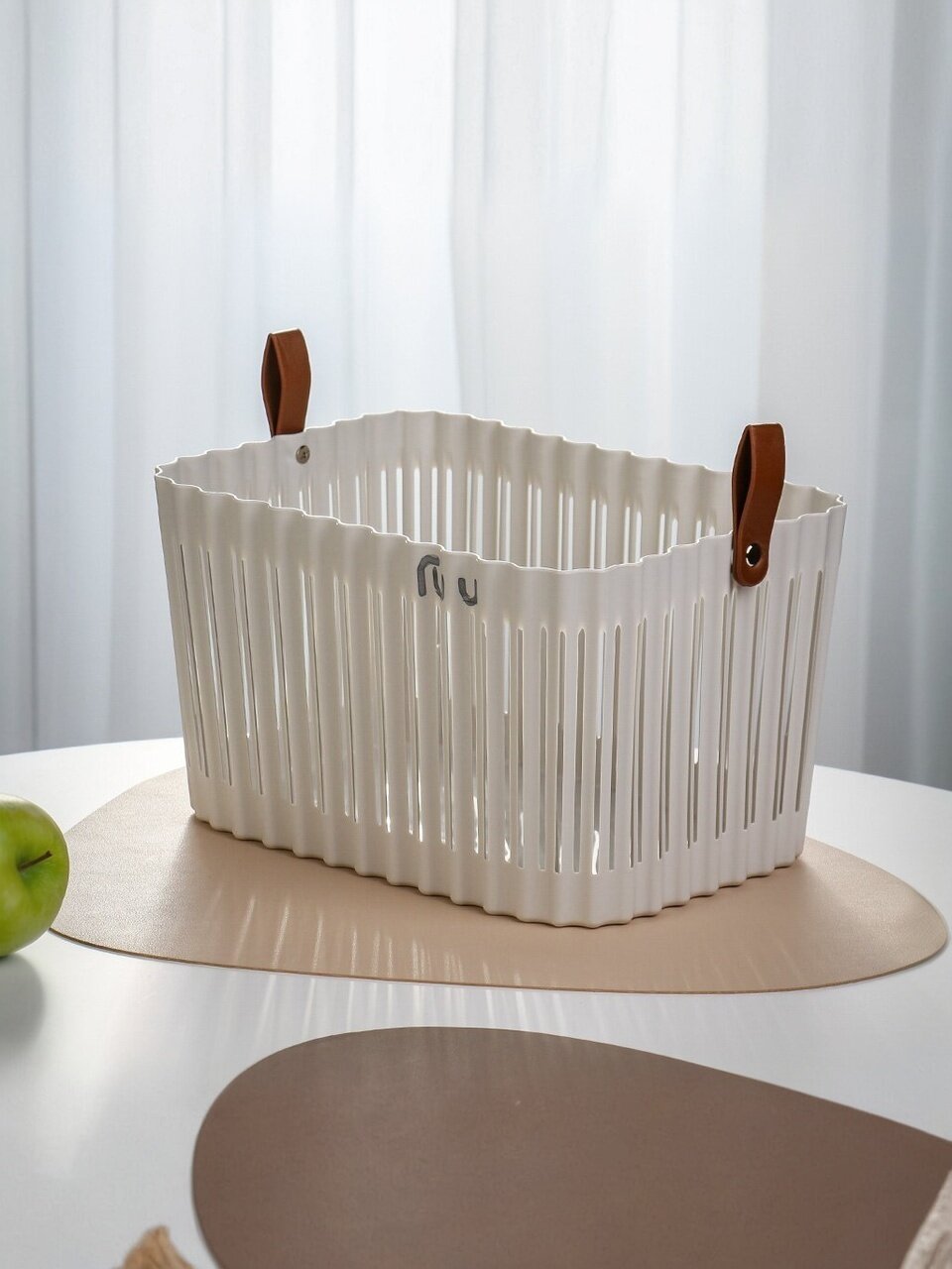Покупатели часто спрашивают, чем отличается такая корзина от плетёных или тканевых аналогов. Пластик легче, не боится воды, не деформируется при нагрузке и отлично подходит для хранения в ванной, на кухне или в детской. Если вы ищете, как выбрать корзину для хранения игрушек или белья, обратите внимание на наличие ручек — у этой модели они предусмотрены, что облегчает переноску. Нет крышки — содержимое всегда на виду, что удобно для частого доступа.