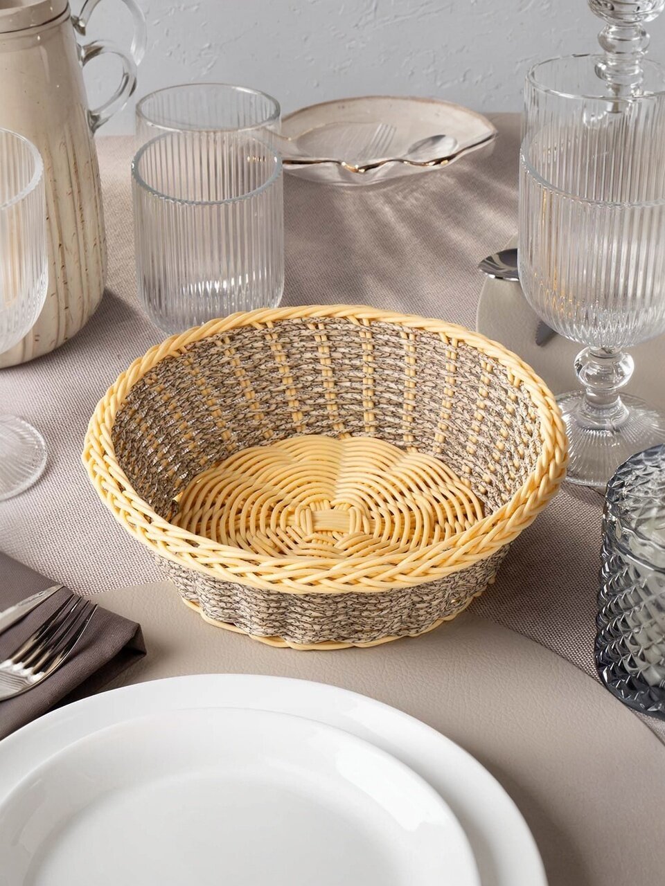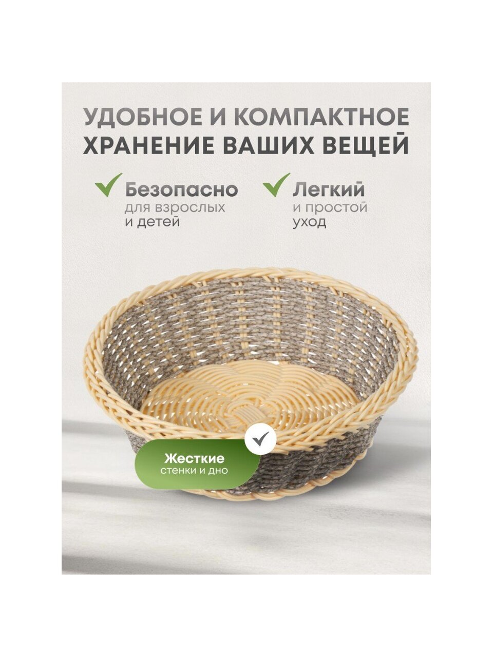 Плетеная декоративная корзина удобна для хранения, аксессуар отлично впишется в интерьер кухни и подойдет для фруктов, кондитерских и хлебобулочных изделий, а также станет хорошей декоративной упаковкой для подарков.