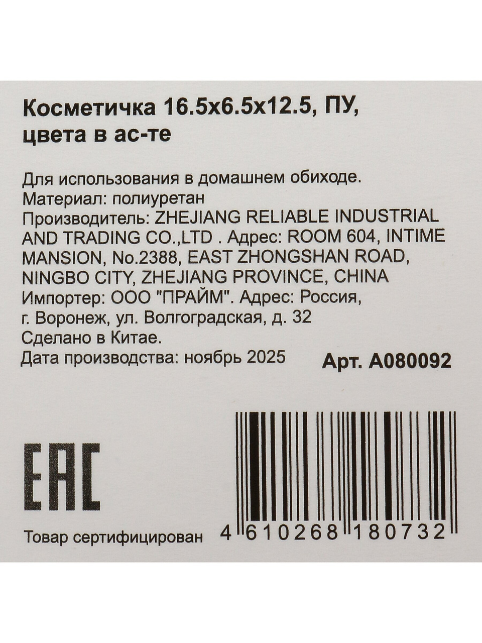 Косметичка 16.5х6.5х12.5 см из ПУ: компактное решение для хранения косметики и аксессуаров дома, в поездках или на подарок. Закажите выгодно!