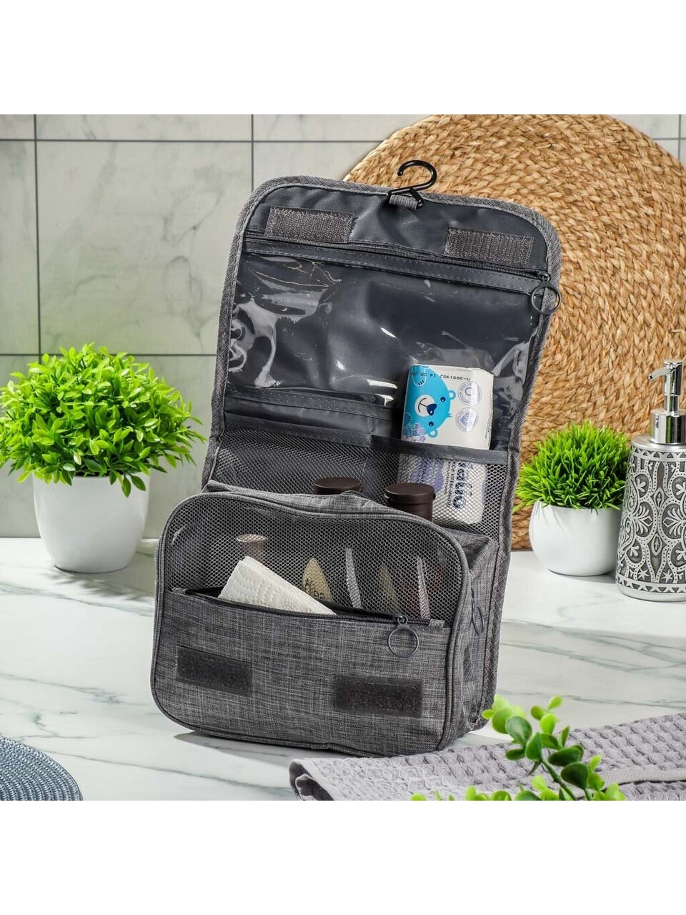 Косметичка дорожная Меланж - идеальный вариант для хранения косметики, парфюмерии и аксессуаров. Она прекрасно подойдёт для перевозки принадлежностей в путешествиях, будь то крема, шампуни, бальзамы, тоники, туши и т.д. Она станет незаменимым помощником как при ежедневном использовании, так и во время поездок на отдых. Благодаря универсальному и практичному дизайну косметичку возможно использовать в качестве подарка.