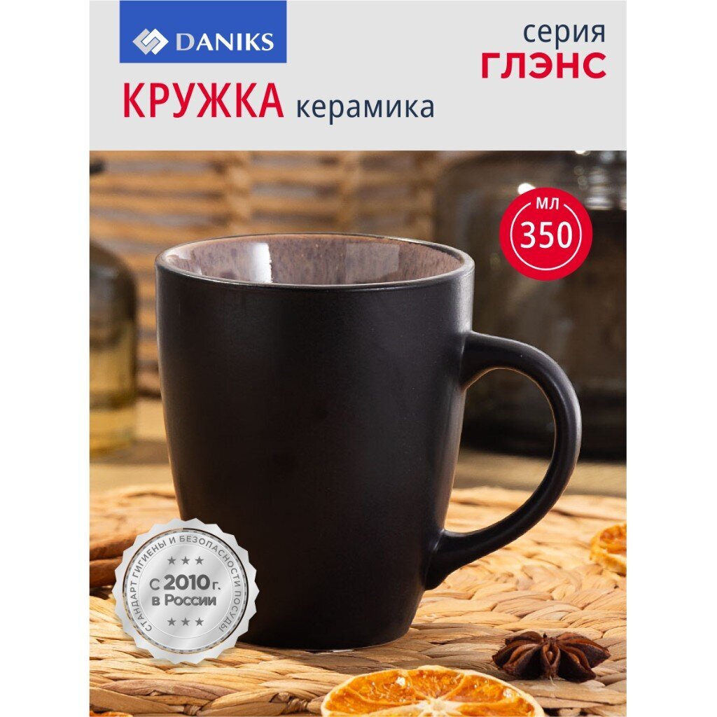 Керамическая кружка Daniks Глэнс 350 мл — стильное решение для дома и офиса: универсальный объём, современный дизайн, подходит для СВЧ и посудомоечной машины.