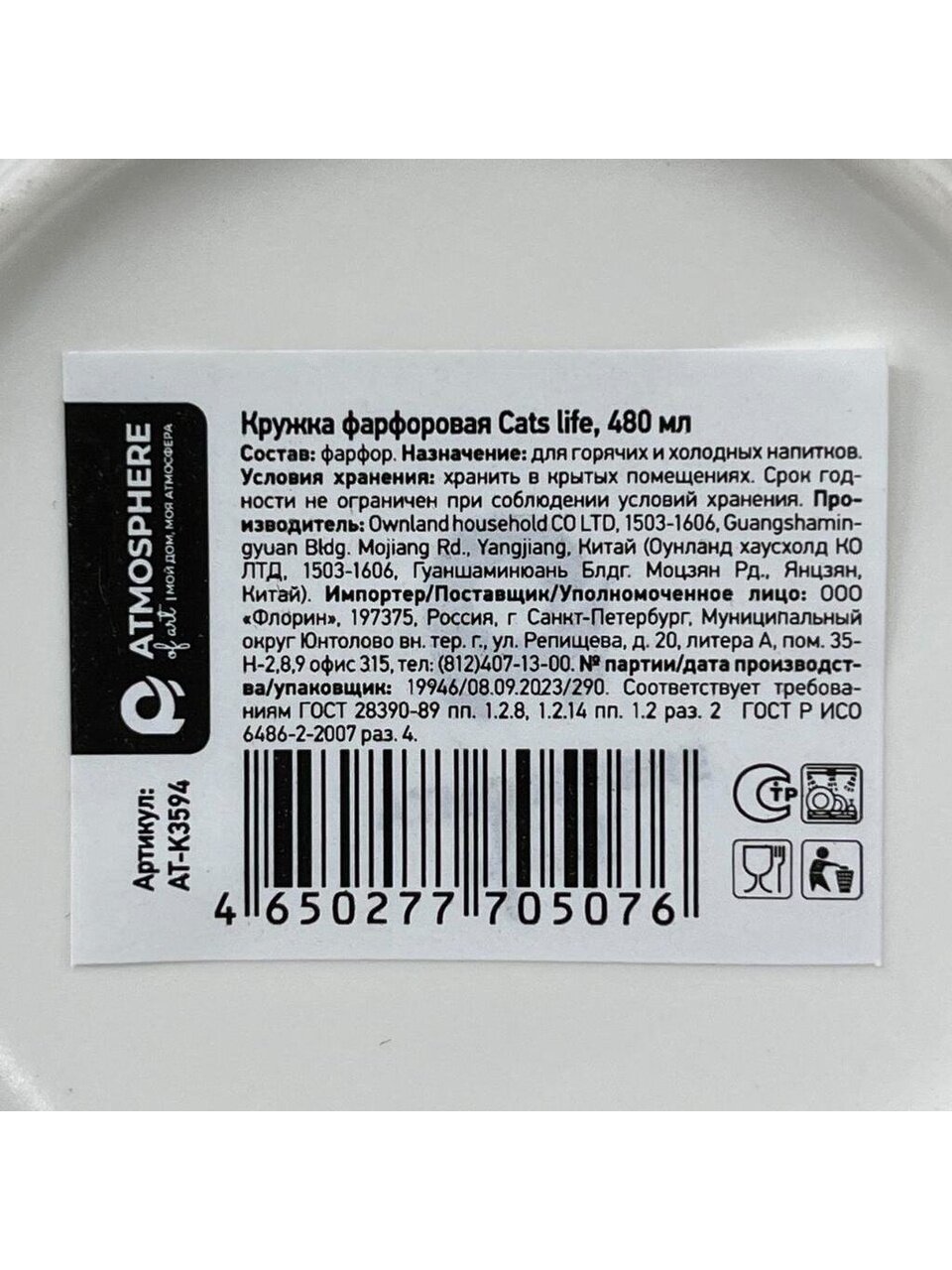 Вы можете приобрести «Кружка фарфор, 480 мл, Cats life, Atmosphere, AT-K3594, в ассортименте» и другие товары в нашем интернет-магазине в Смоленске по низким ценам и с бесплатным самовывозом.