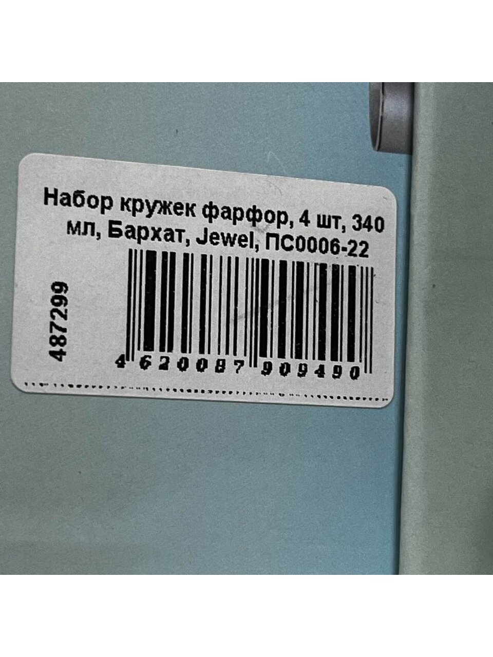 Вы можете приобрести «Набор кружек фарфор, 4 шт, 340 мл, Бархат, Jewel, ПС0006-22» и другие товары в нашем интернет-магазине в Липецке по низким ценам и с бесплатным самовывозом.