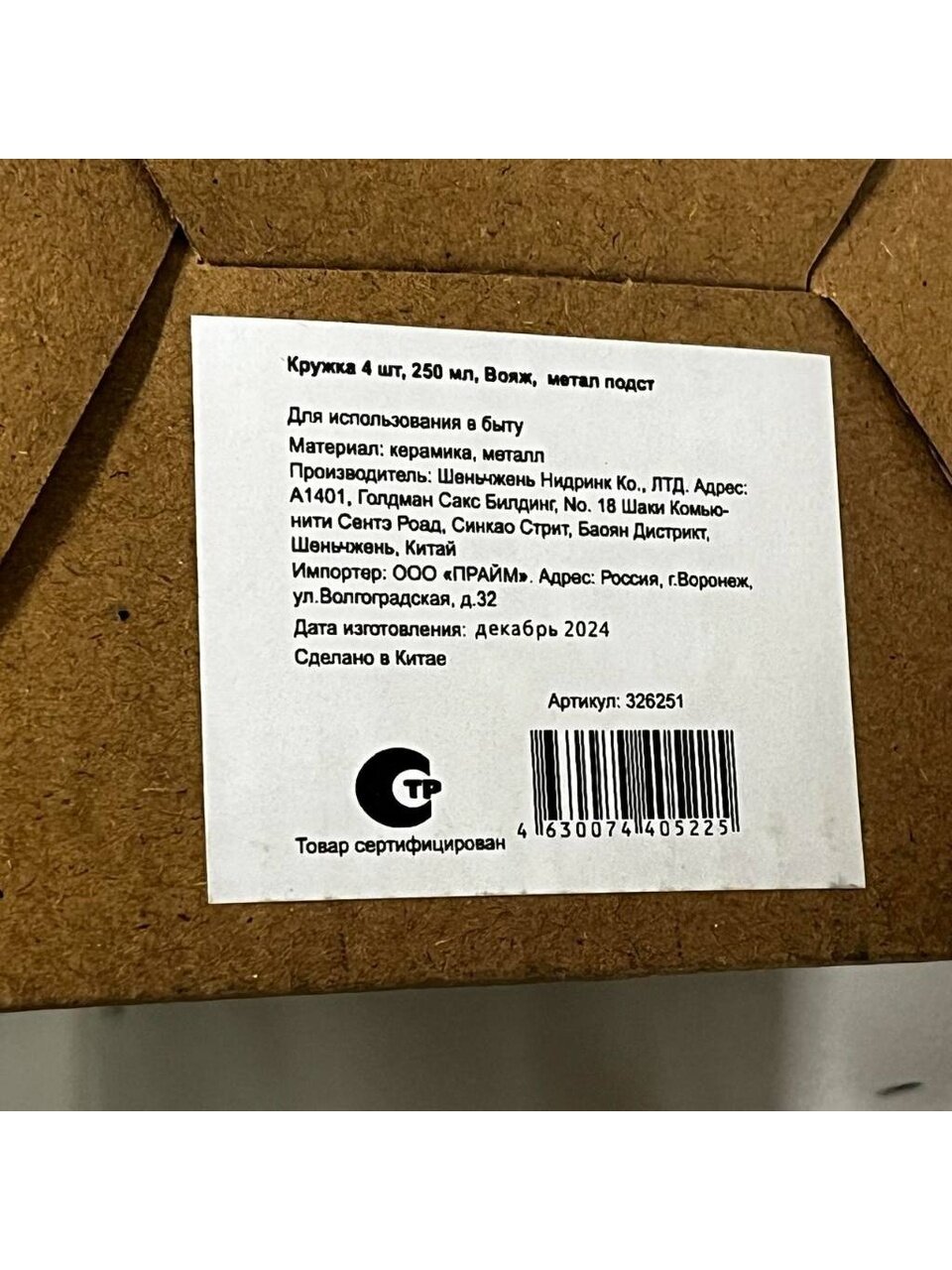 Вы можете приобрести «Кружка керамика, 4 шт, 250 мл, Вояж, Y6-2520, металлическая подставка» и другие товары в нашем интернет-магазине в Борисоглебске по низким ценам и с бесплатным самовывозом.