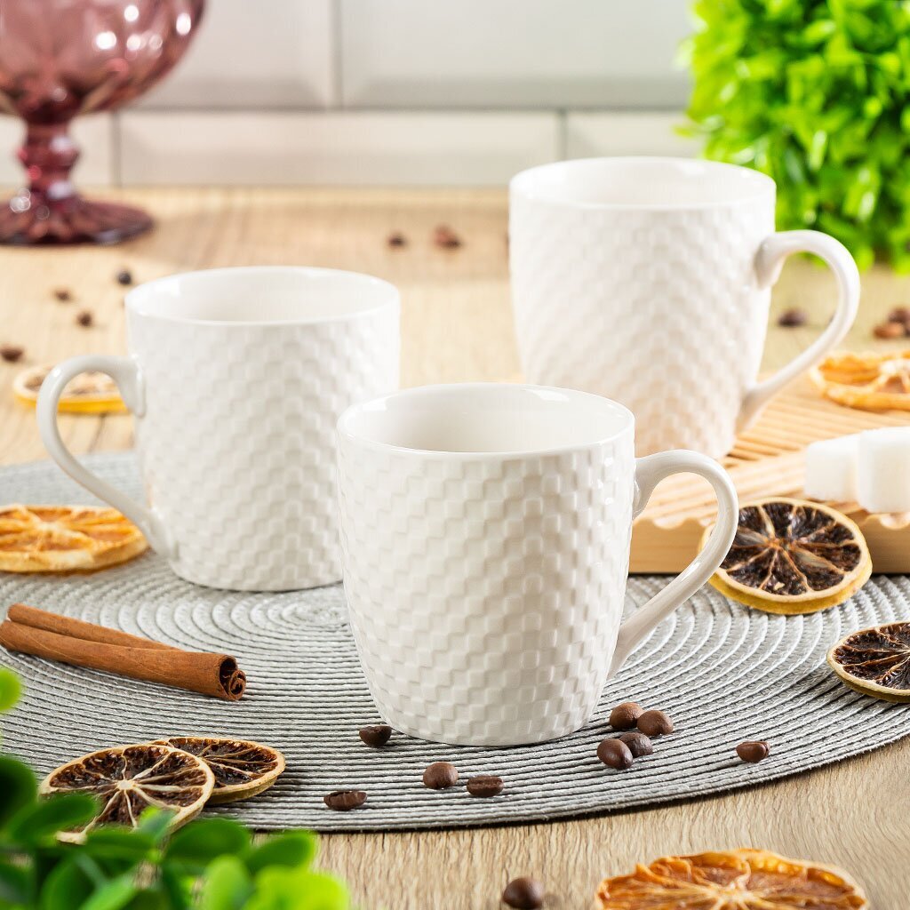 Стильные керамические кружки "Шахматка белая", набор 3 шт по 220 мл — практичное решение для дома, дачи и подарка. Можно мыть в посудомоечной машине и использовать в СВЧ.