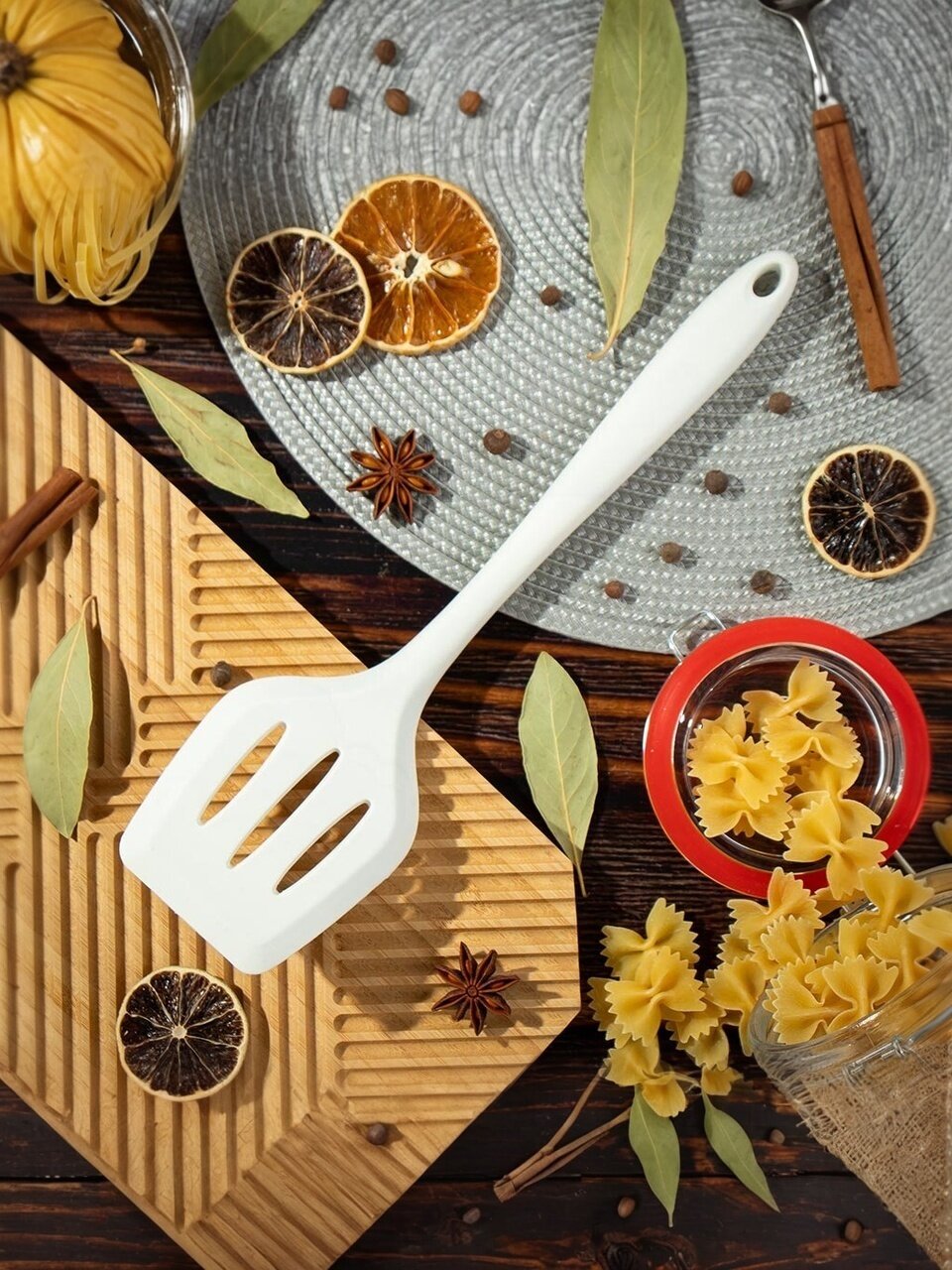 Вы можете приобрести «Лопатка кулинарная силикон, 29.2х7.5 см, с прорезями, навеска, Daniks, Emerald, Y4-7894» и другие товары в нашем интернет-магазине в Иваново по низким ценам и с бесплатным самовывозом.