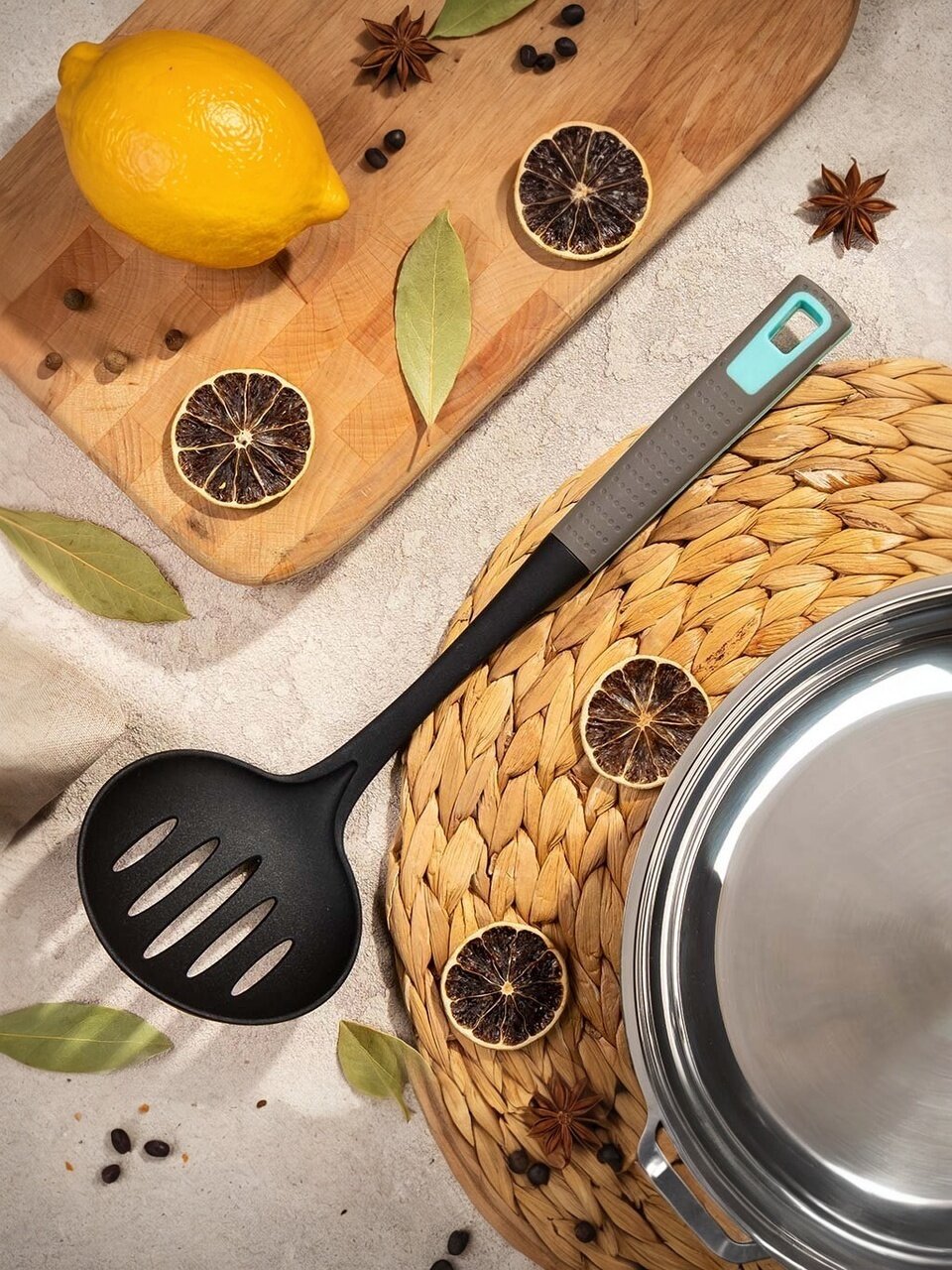 Ложка кулинарная перфорированная выполнена из высококачественного термостойкого нейлона, он не выделяет вредных веществ при нагреве, неприхотлив в использовании. Все изделия абсолютно безопасны для любых антипригарных покрытий. Эргономичная ручка не позволит инструменту выскальзывать из рук. Нейлон - безопасен для еды, не токсичен, без запаха.