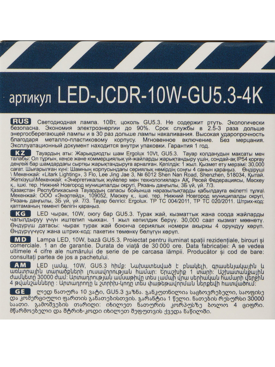 Вы можете приобрести «Лампа светодиодная GU5.3, 10 Вт, 240 В, 4000 К, нейтральный белый свет, Ergolux, 15562, JCDR, 15562» и другие товары в нашем интернет-магазине в Шахтах по низким ценам и с бесплатным самовывозом.