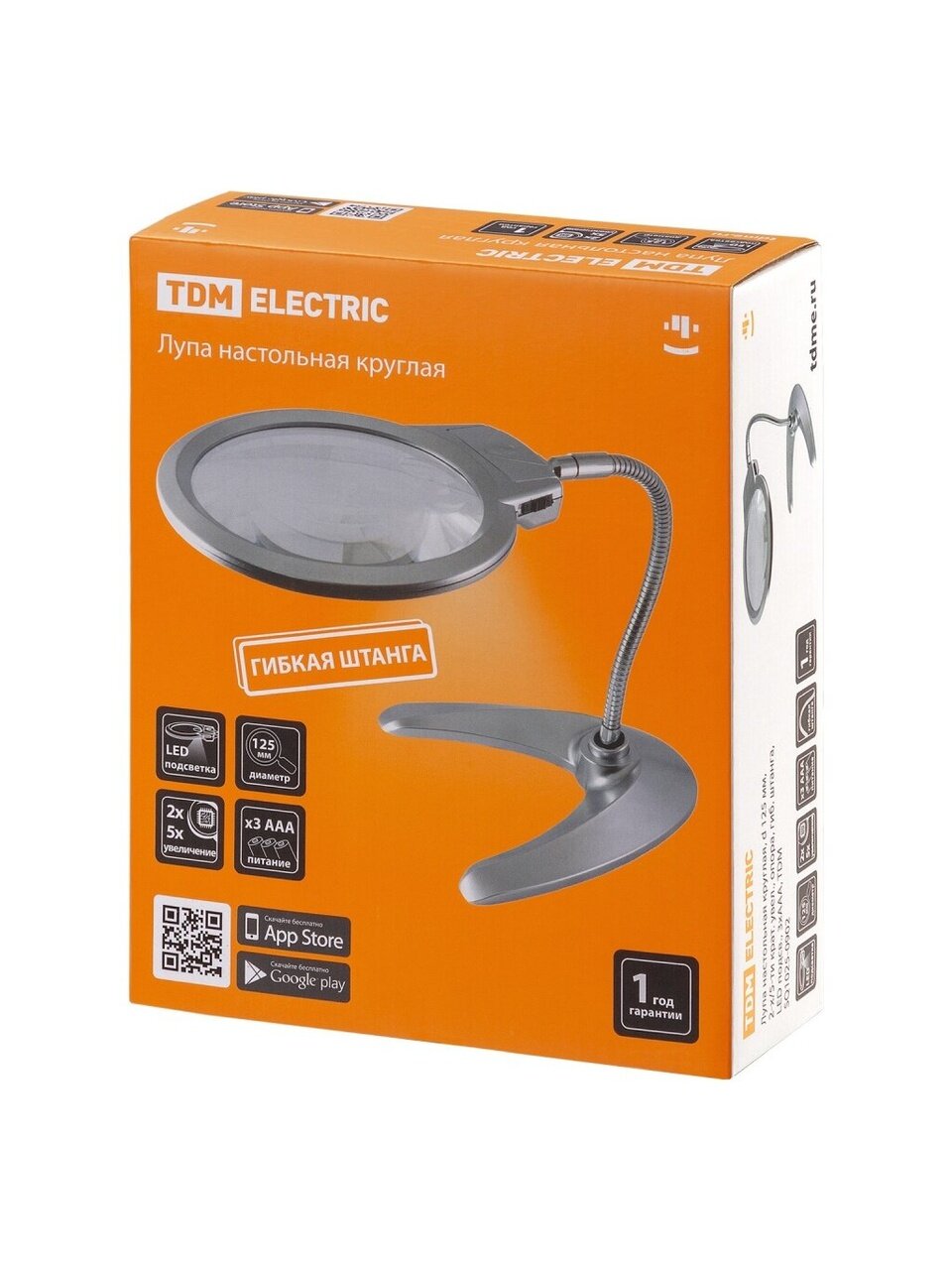Вы можете приобрести «Лупа настольная, круглая, d 125 мм, двух-пяти кратное увеличение, подсветка, гибкая штанга, опора, 3хAAA, TDM Electric, SQ1025-0902» и другие товары в нашем интернет-магазине в Таганроге по низким ценам и с бесплатным самовывозом.