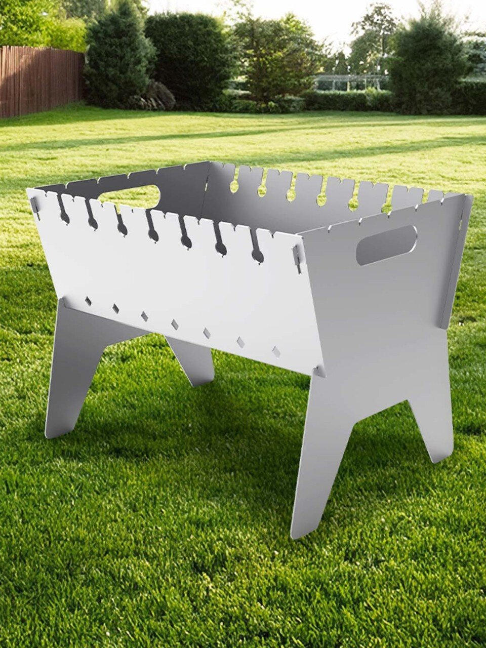 Мангал легко собирается без инструментов, устойчив на любой поверхности, а его вес позволяет брать его в багажник авто. Для тех, кто ищет, чем отличается разборный мангал от стационарного, — это мобильность, простота хранения и отсутствие лишних хлопот.