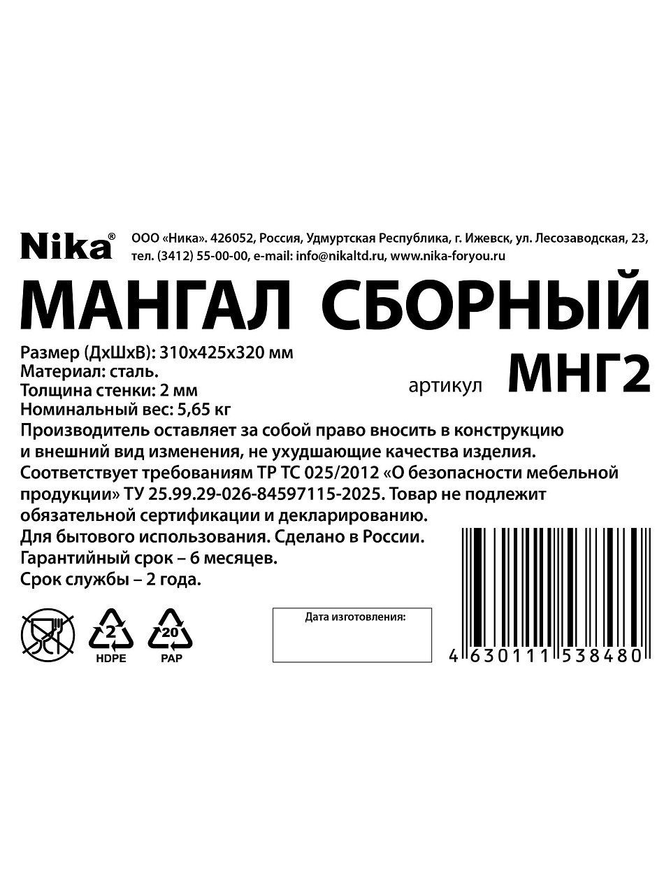 Закажите разборный мангал Nika прямо сейчас — получите качественный стальной гриль по выгодной цене с быстрой доставкой и гарантией производителя.