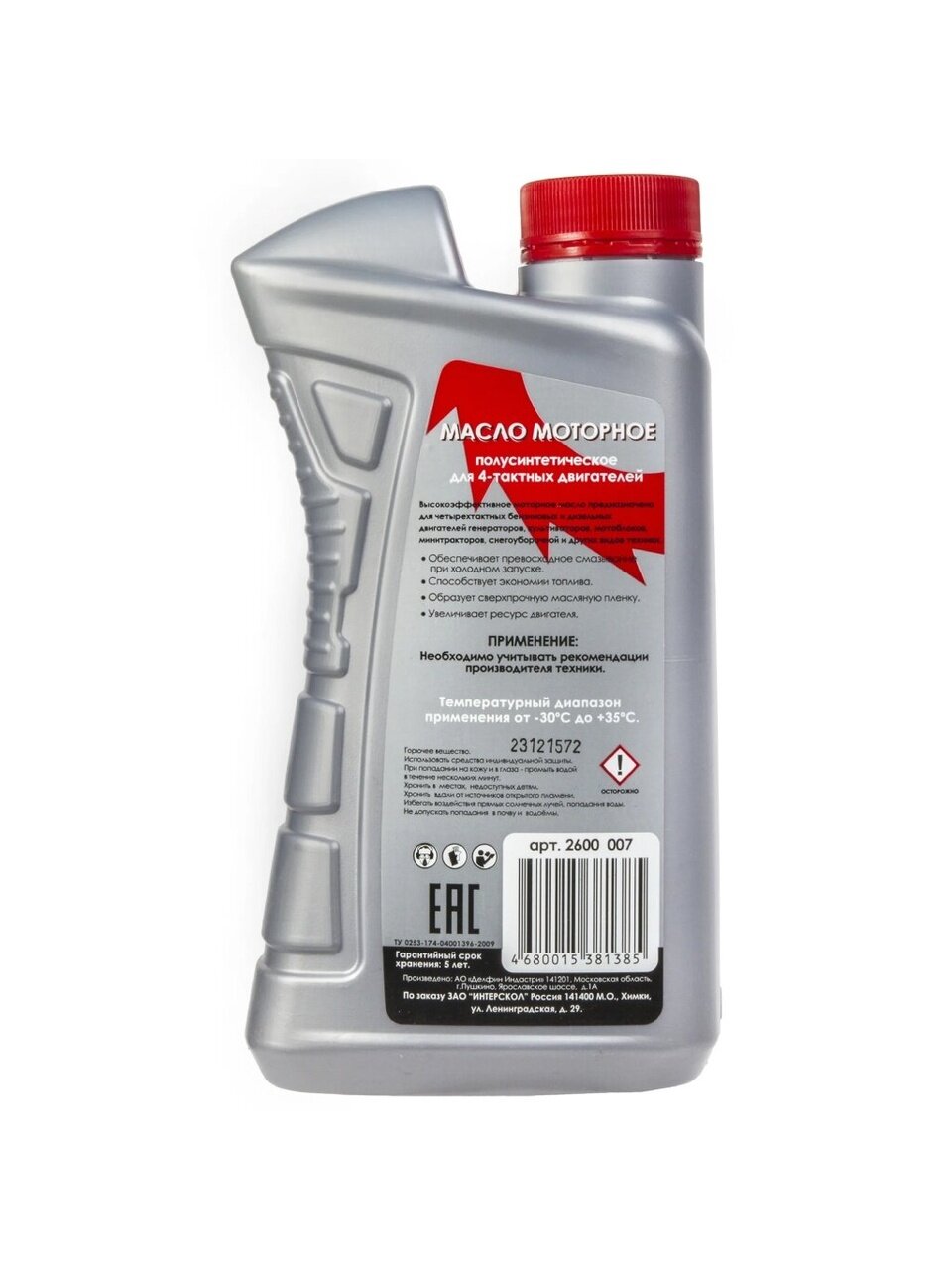 Вы можете приобрести «Масло машинное полусинтетическое, для четырехтактного двигателя, Интерскол, 1 л, 2600 007» и другие товары в нашем интернет-магазине в Липецке по низким ценам и с бесплатным самовывозом.