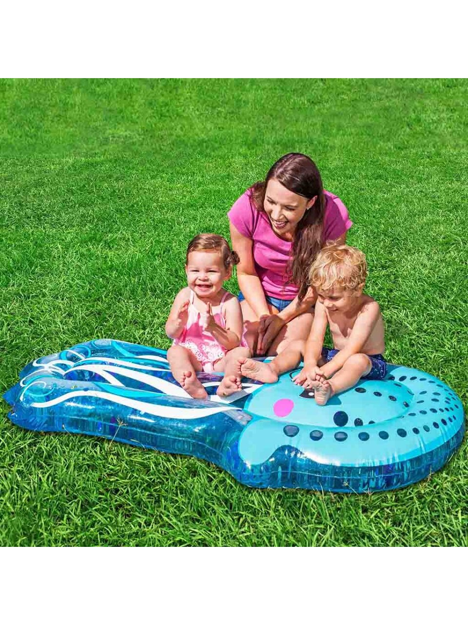 Матрас имеет яркий дизайн, его можно использовать не только как плот для плавания: в него можно залить воду и оставить детей играться.