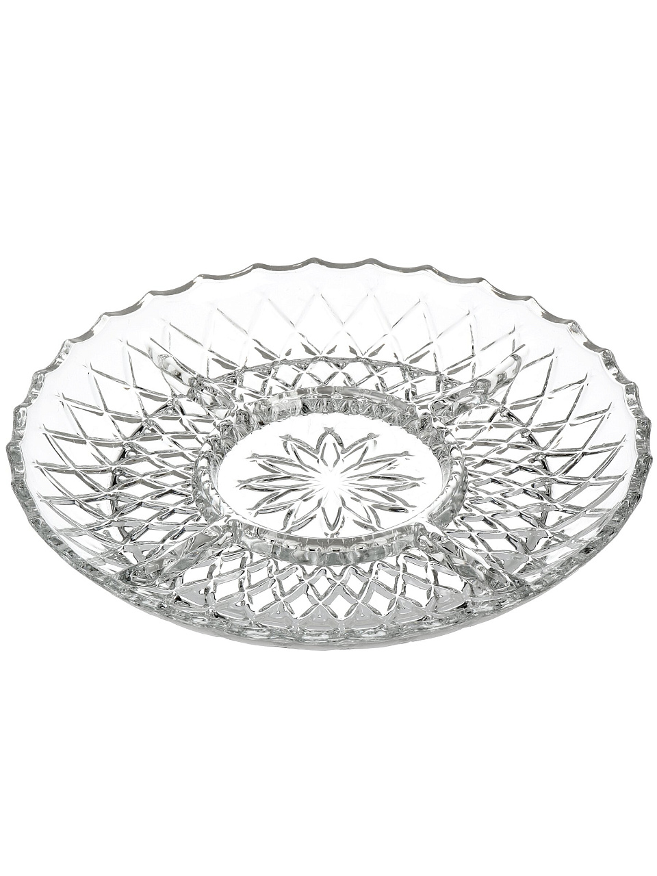 Диаметр изделия — 28.5 см, всего 5 секций. Это оптимально для сервировки разных закусок, фруктов, орехов или сладостей на одном блюде.