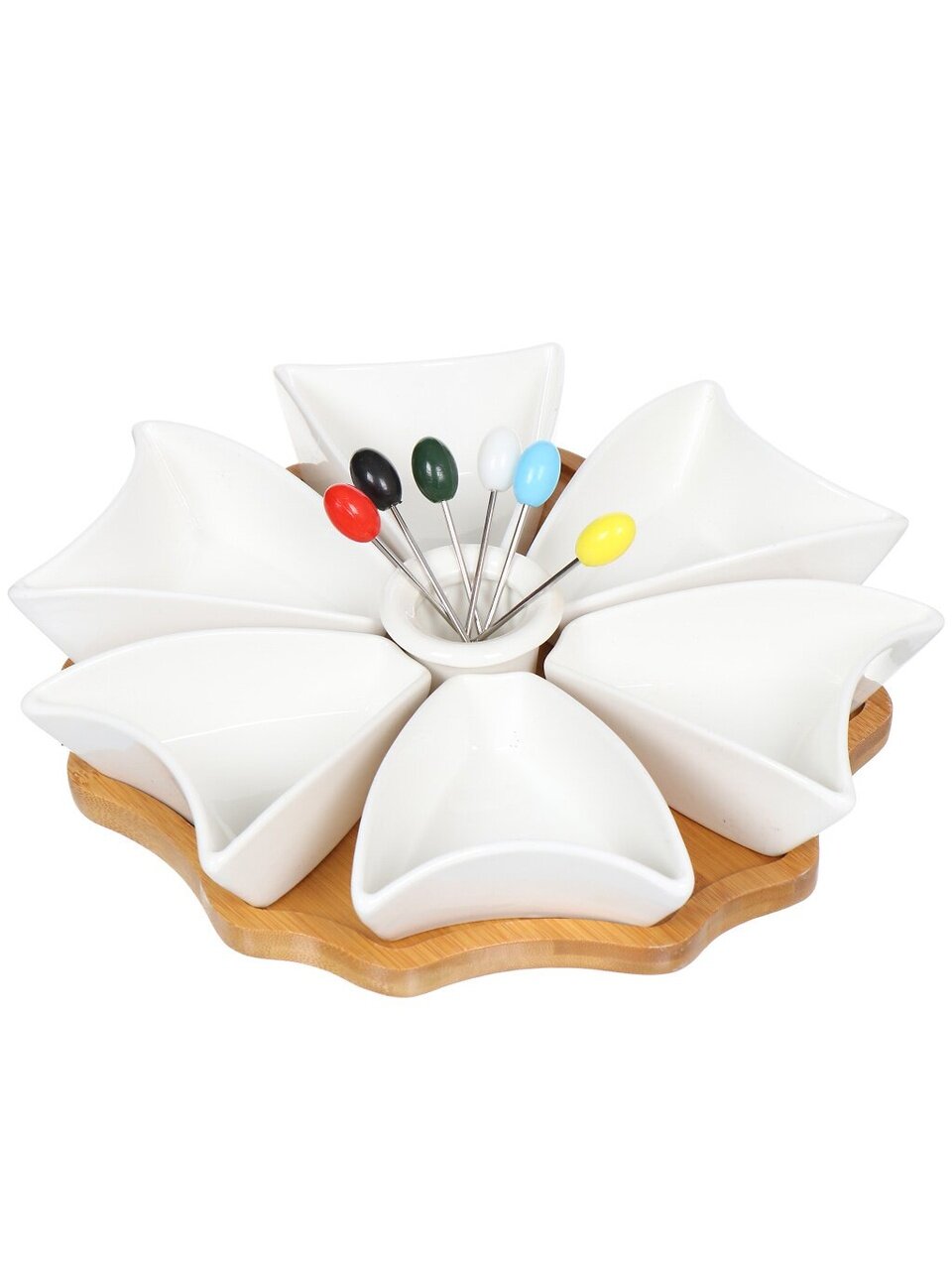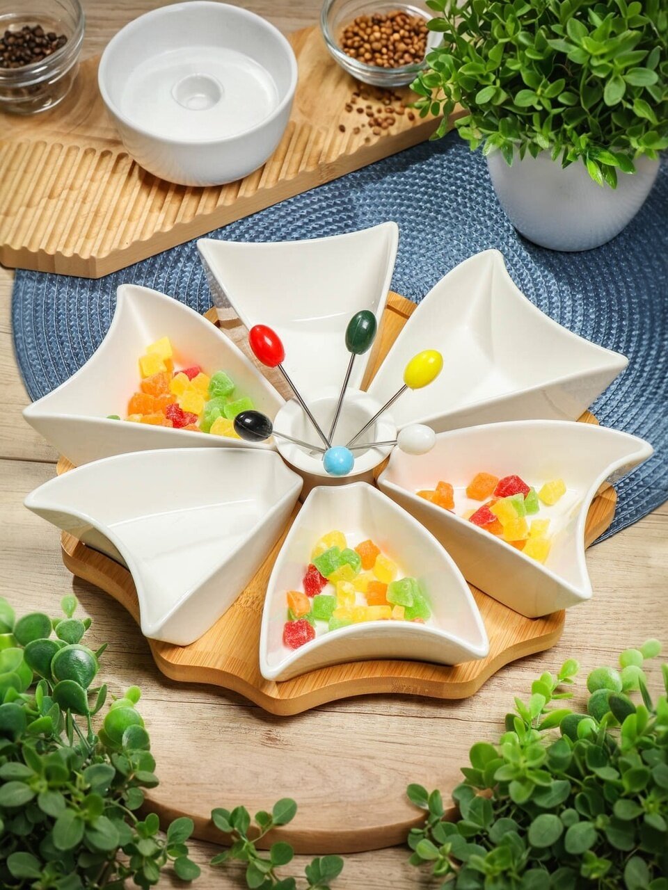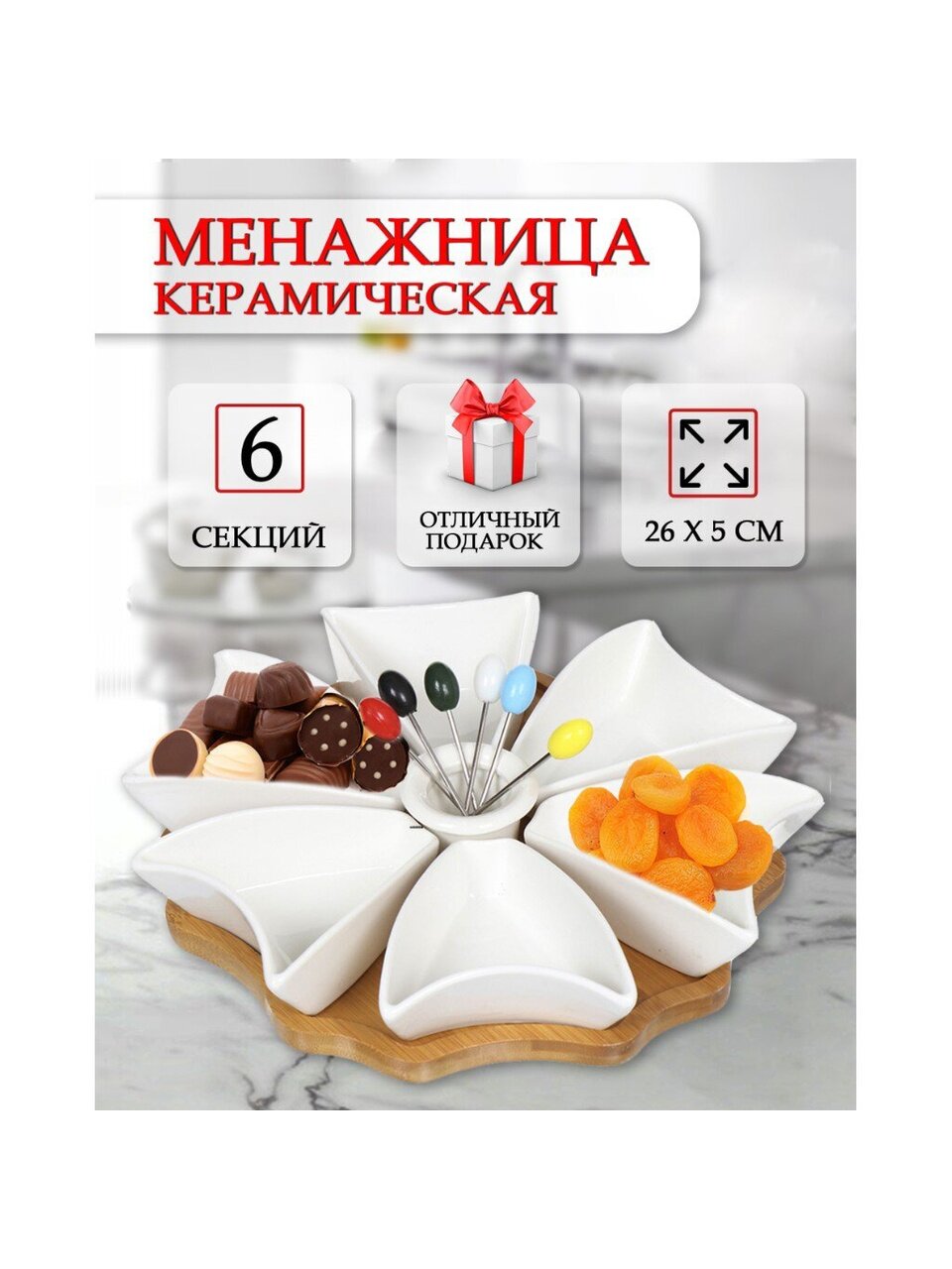 Вы можете приобрести «Менажница керамика, 26х5 см, 6 секций, бамбуковая подставка, Y4-3218» и другие товары в нашем интернет-магазине в Иваново по низким ценам и с бесплатным самовывозом.