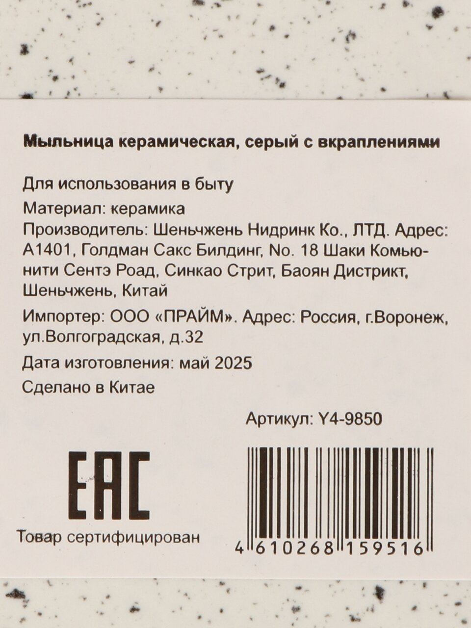 Мыльница настольная керамика, сер с краплением, Y4-9850