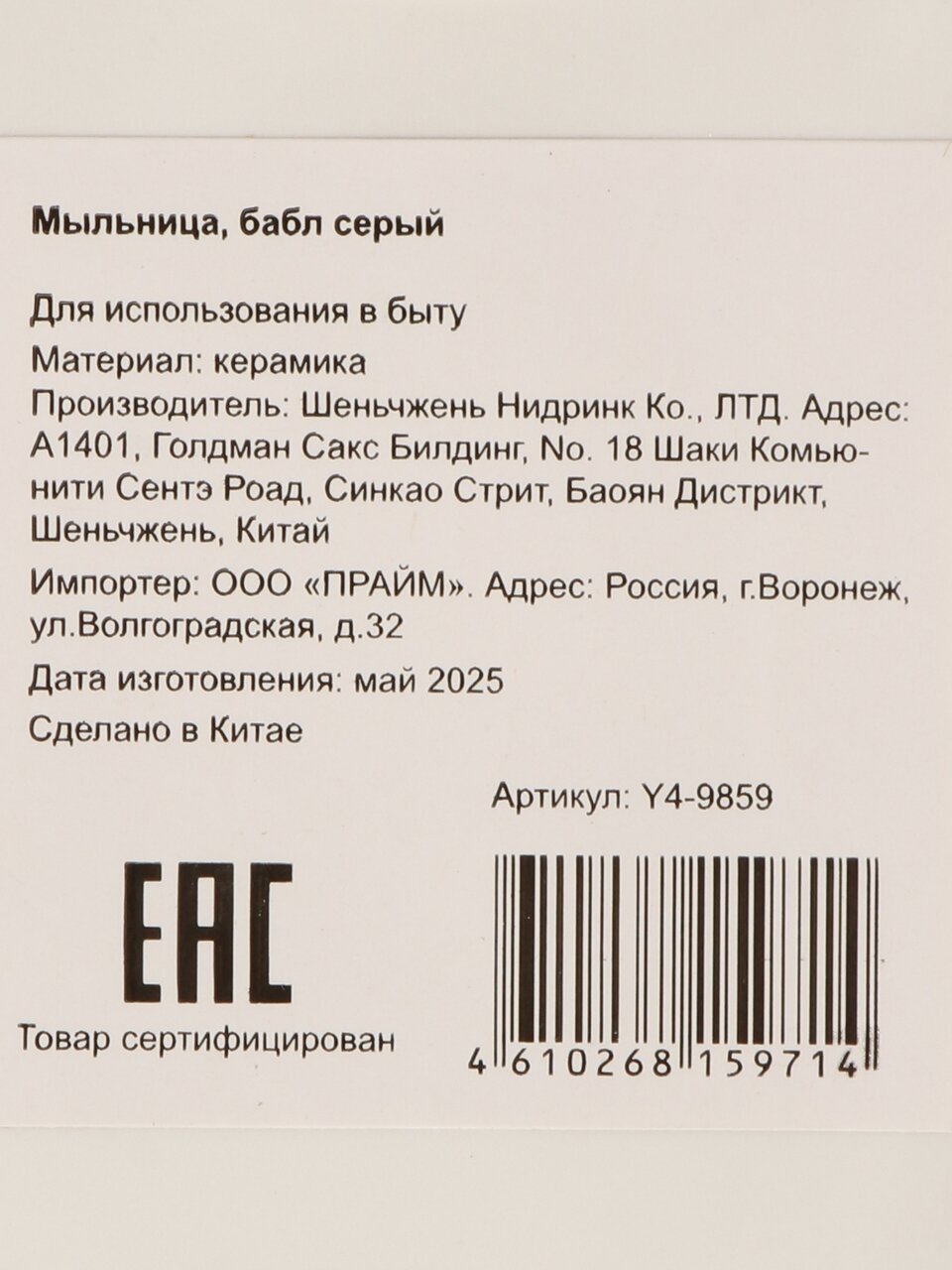 Мыльница настольная,керамика, бабл серый, Y4-9859