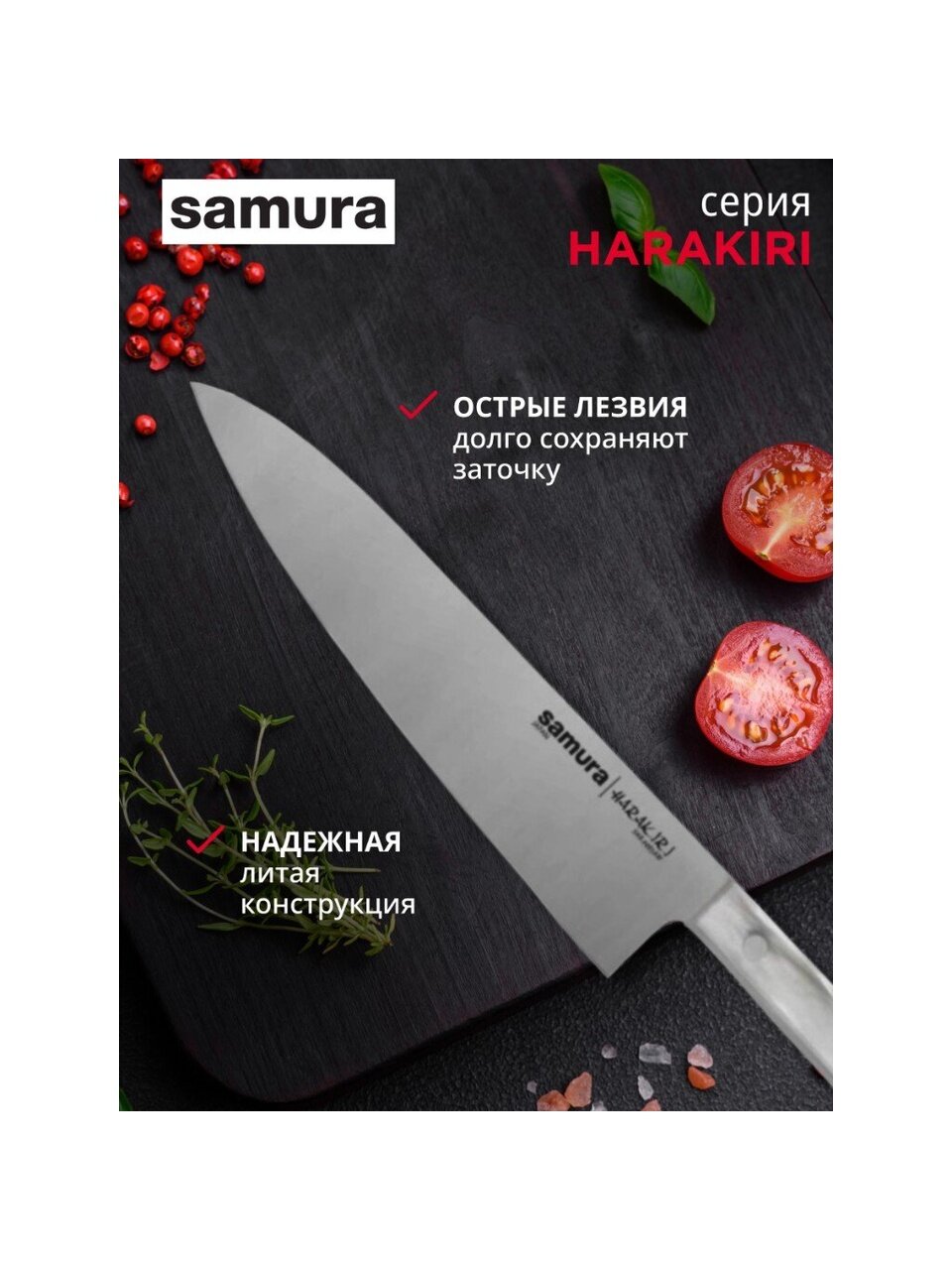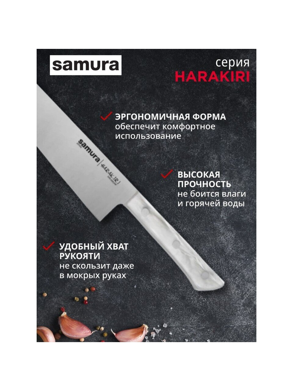 Ножи Samura Harakiri — это выбор тех, кто ценит качество, функциональность и стиль. Серебристый цвет придаёт современный вид, а цельнометаллическая конструкция обеспечивает прочность и устойчивость к износу. Благодаря продуманному балансу и надежной фиксации рукоятки ножи удобно лежат в руке, что повышает эффективность работы и снижает усталость.