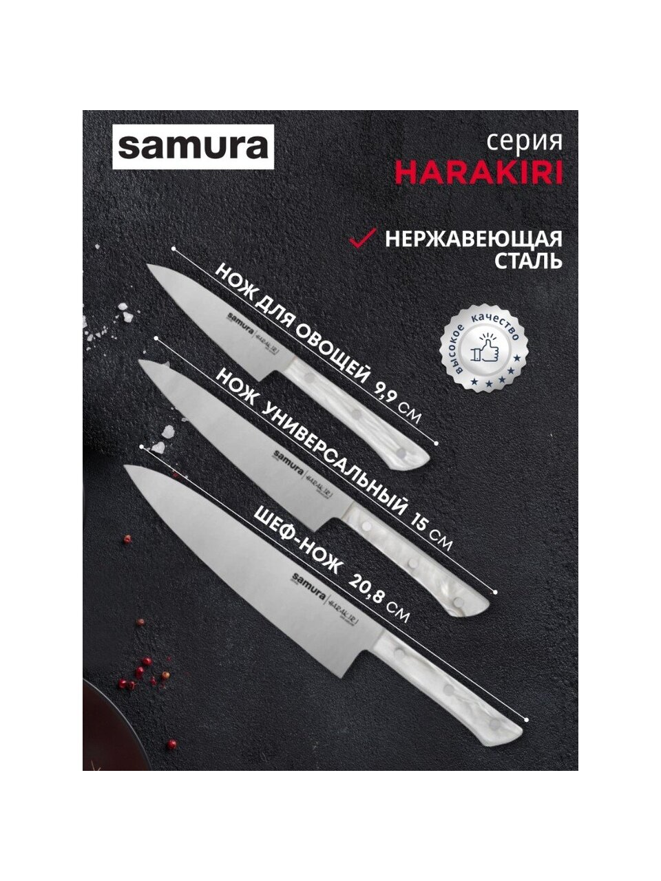 Вы можете приобрести «Набор ножей 3 предмета, 9.9 см, 15 см, 20.8 см, нержавеющая сталь, рукоятка пластик, Samura, Harakiri, SHR-0220AW/K» и другие товары в нашем интернет-магазине в Старом Осколе по низким ценам и с бесплатным самовывозом.