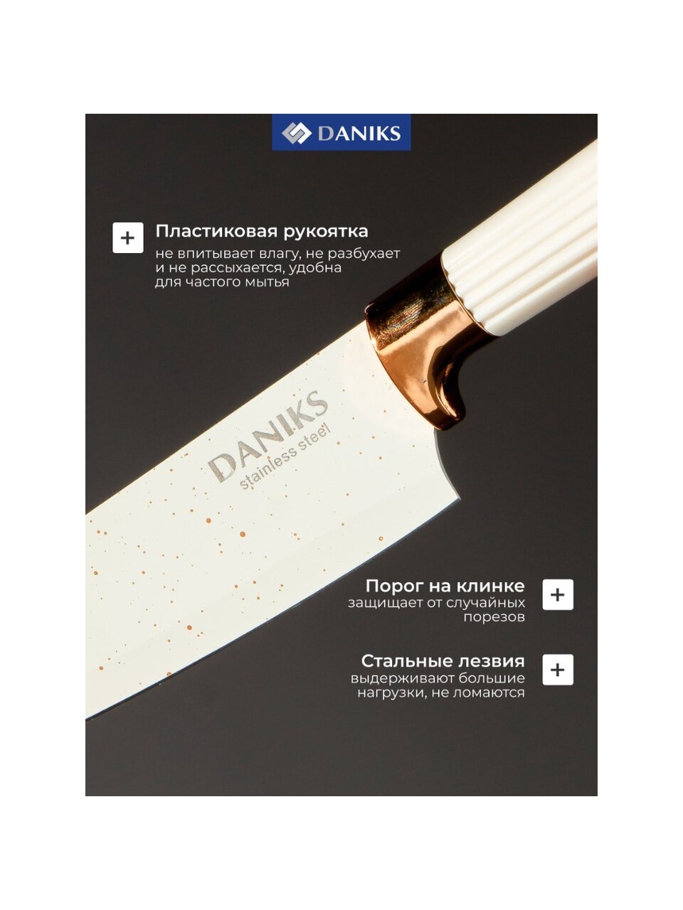 Покупая набор ножей Daniks Стиль, удается не только решить вопрос с выбором качественных кухонных инструментов, но и создать эстетичный и функциональный рабочий уголок. Комплект подходит для ежедневного использования, долговечен и прост в уходе, что экономит время и силы. Такой набор станет отличным подарком для любителей готовить и ценителей порядка на кухне. Оптимальное соотношение цены и качества делает покупку выгодной для каждого, кто стремится к комфорту и эффективности в быту.