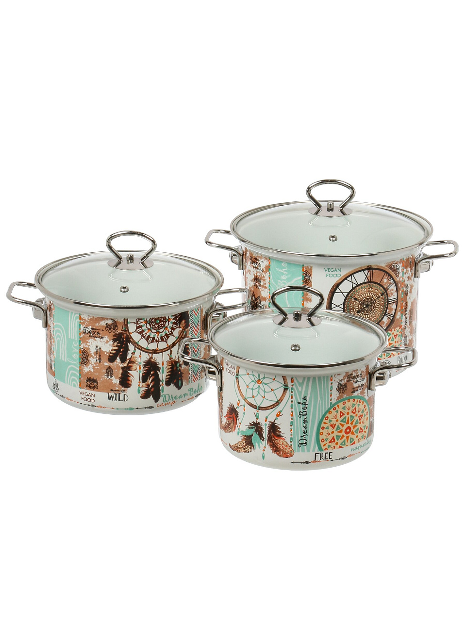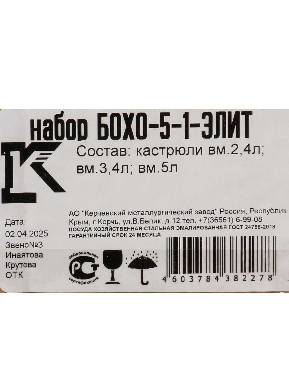 Вы можете приобрести «Набор посуды эмалированная сталь, 6 предметов, 1.9, 2.5, 5 л, индукция, Керченский металлургический завод, Бохо-5-1-Элит, белый» и другие товары в нашем интернет-магазине в Обнинске по низким ценам и с бесплатным самовывозом.