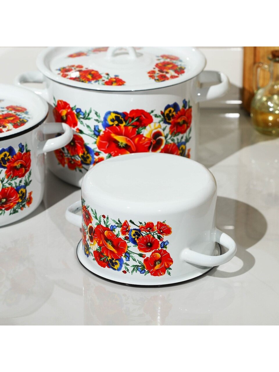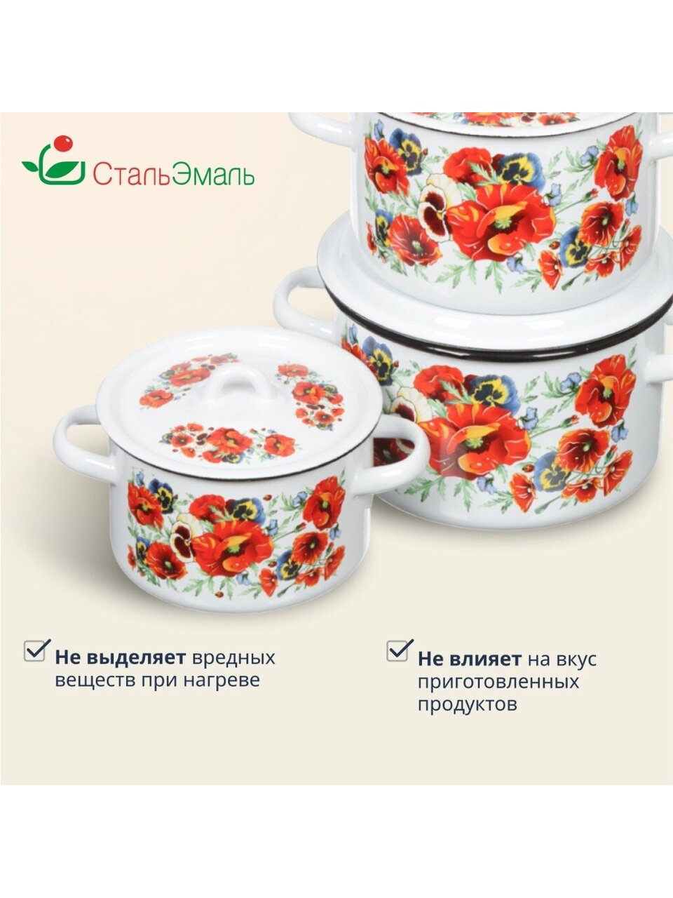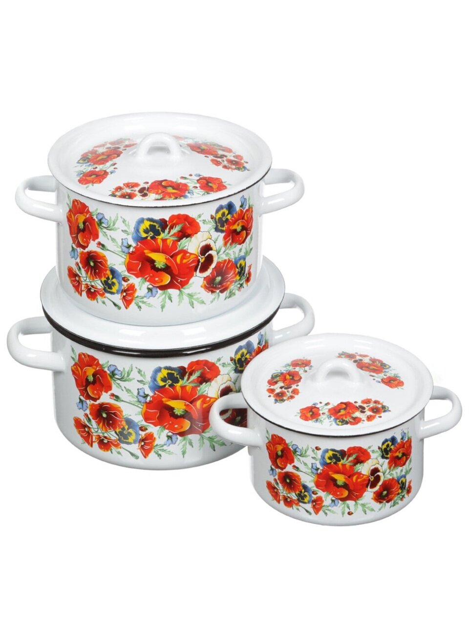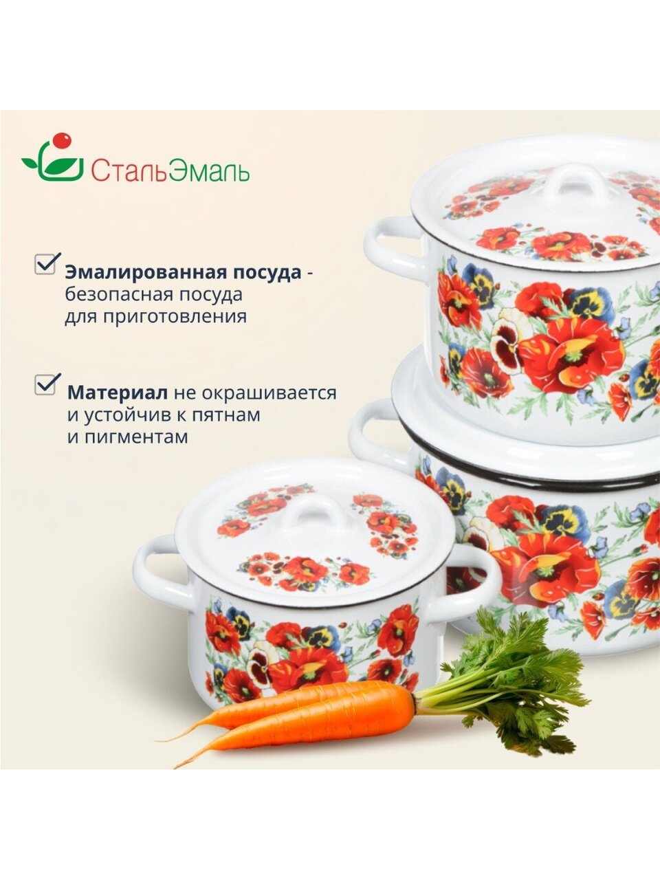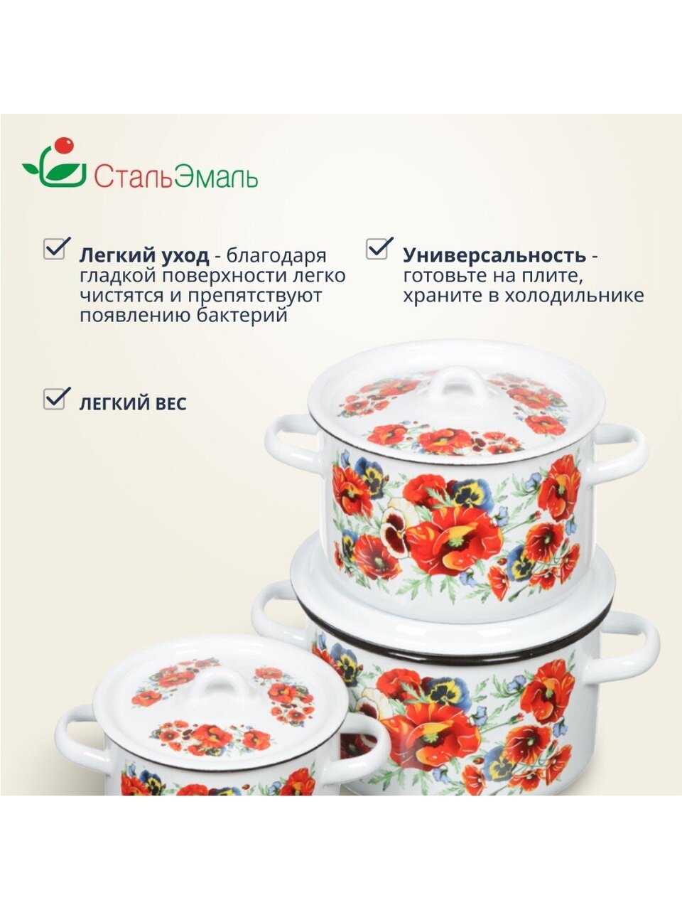 Набор эмалированных кастрюль СтальЭмаль Маки мечта: 3 размера (1.5, 2.9, 4.5 л), подходит для индукции, идеален для дома и дачи, выгодная цена.