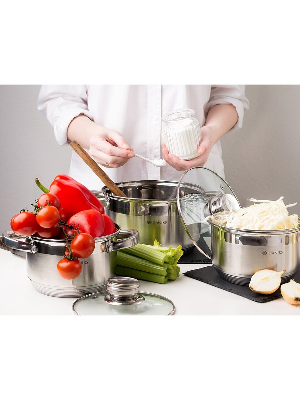 Набор кастрюль из нержавеющей стали Daniks 6 предметов: универсальное решение для кухни и дачи, подходит для индукции, оптимальные объёмы 1.9/2.9/4.75 л
