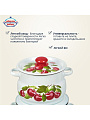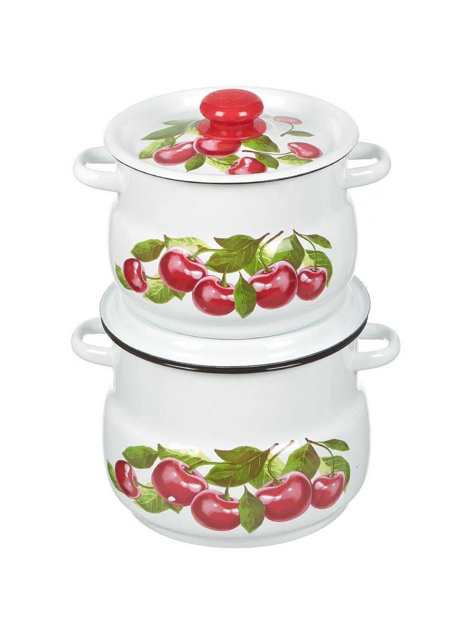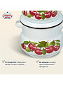 - Уникальный дизайн: классическая белая эмаль с ярким вишнёвым декором гармонирует с любым интерьером кухни