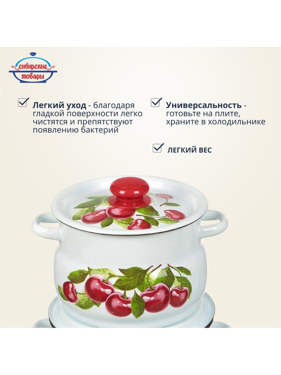 Набор посуды из эмалированной стали «Сибирские товары Вишневый сад 10» — это классика, проверенная временем. Эмалированная поверхность устойчива к царапинам и не впитывает запахи, что особенно важно для приготовления супов, варенья, компотов. Часто спрашивают: "Какой набор кастрюль выбрать для дачи?" — этот комплект отличается универсальностью, долговечностью и доступной ценой. Если вы ищете, чем отличается эмалированная посуда от других видов, обратите внимание: сталь с эмалью не вступает в реакцию с продуктами, легко очищается и сохраняет вкус блюд без посторонних привкусов.