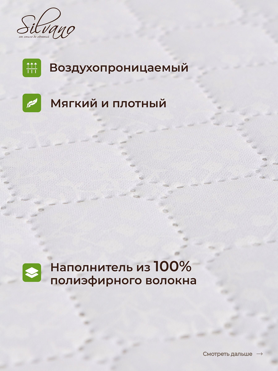Покупка наматрасника Silvano - это инвестиция в качество сна и долговечность вашего матраса. Он не только защищает матрас от загрязнений и повреждений, но и добавляет дополнительный слой комфорта, делая каждую ночь более приятной. Выбирая этот наматрасник, вы получаете продукт, который сочетает в себе стиль и функциональность, делая ваш сон более спокойным и здоровым.