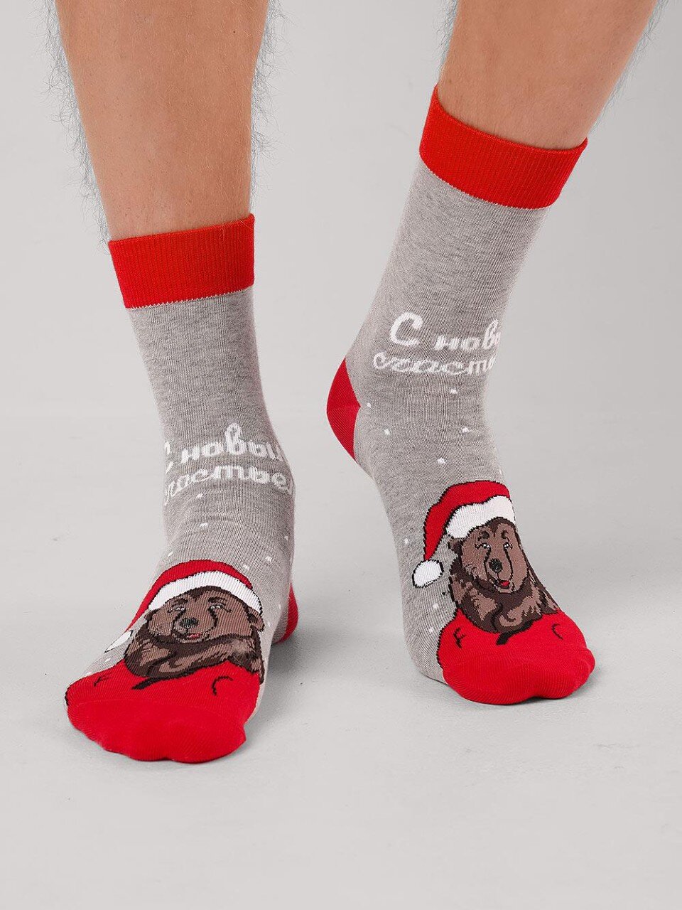 - Эксклюзивный новогодний узор — стильные носки с животными в трендовом сером меланже.