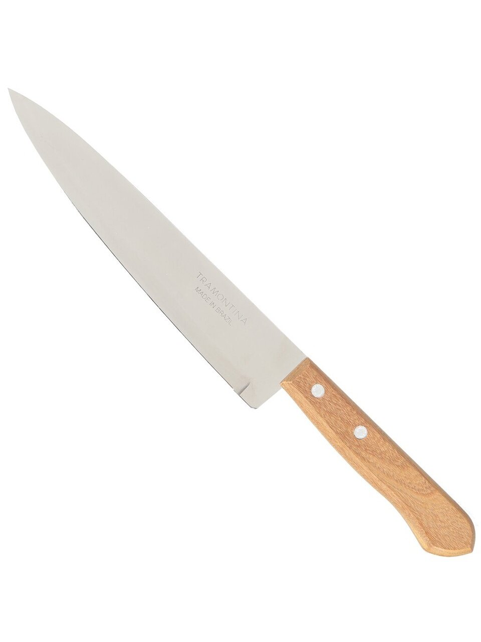 Вы можете приобрести «Нож кухонный Tramontina, Universal, шеф-нож, нержавеющая сталь, 20 см, рукоятка дерево, 22902/008-TR» и другие товары в нашем интернет-магазине в Обнинске по низким ценам и с бесплатным самовывозом.
