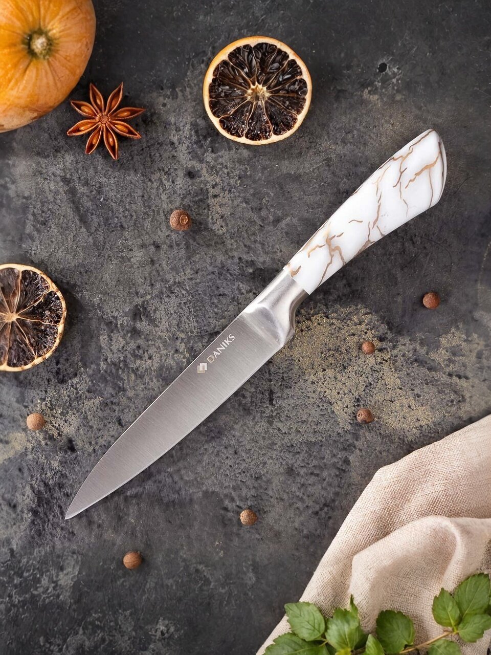 Откройте для себя превосходное качество и универсальность кухонного ножа Daniks Platinum. Этот нож станет незаменимым помощником на вашей кухне, обеспечивая легкость и точность в каждом движении.