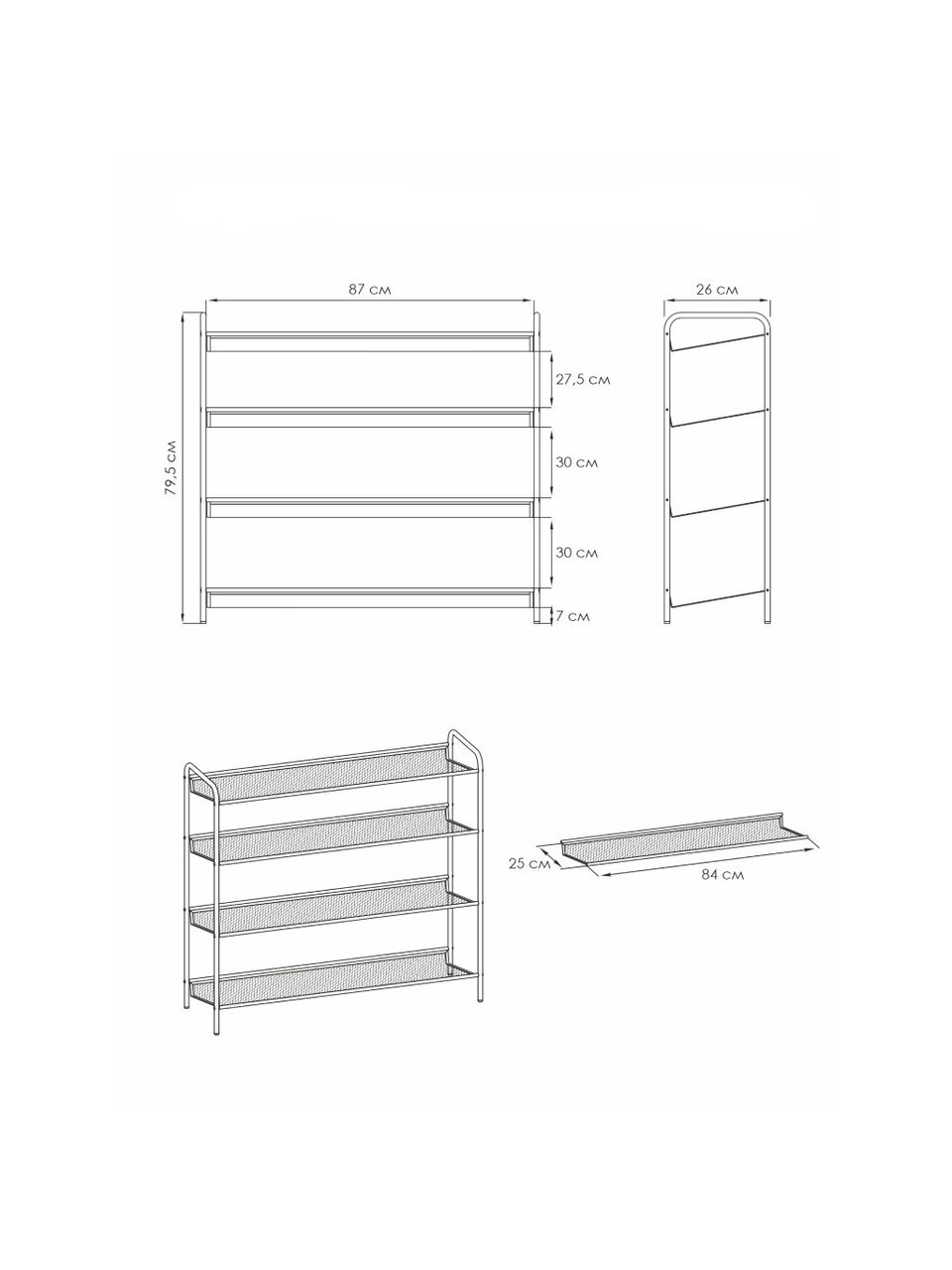 - Количество полок: 4 шт.