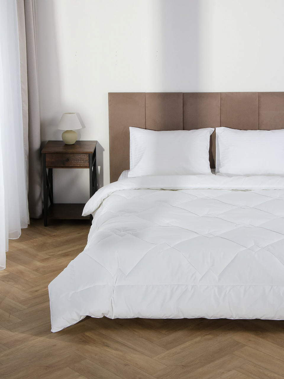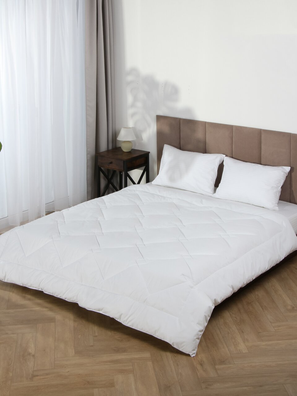 Размер 140х205 см (1.5-спальный), плотность наполнителя 350 г/м2, средняя толщина — оптимально для круглогодичного использования.