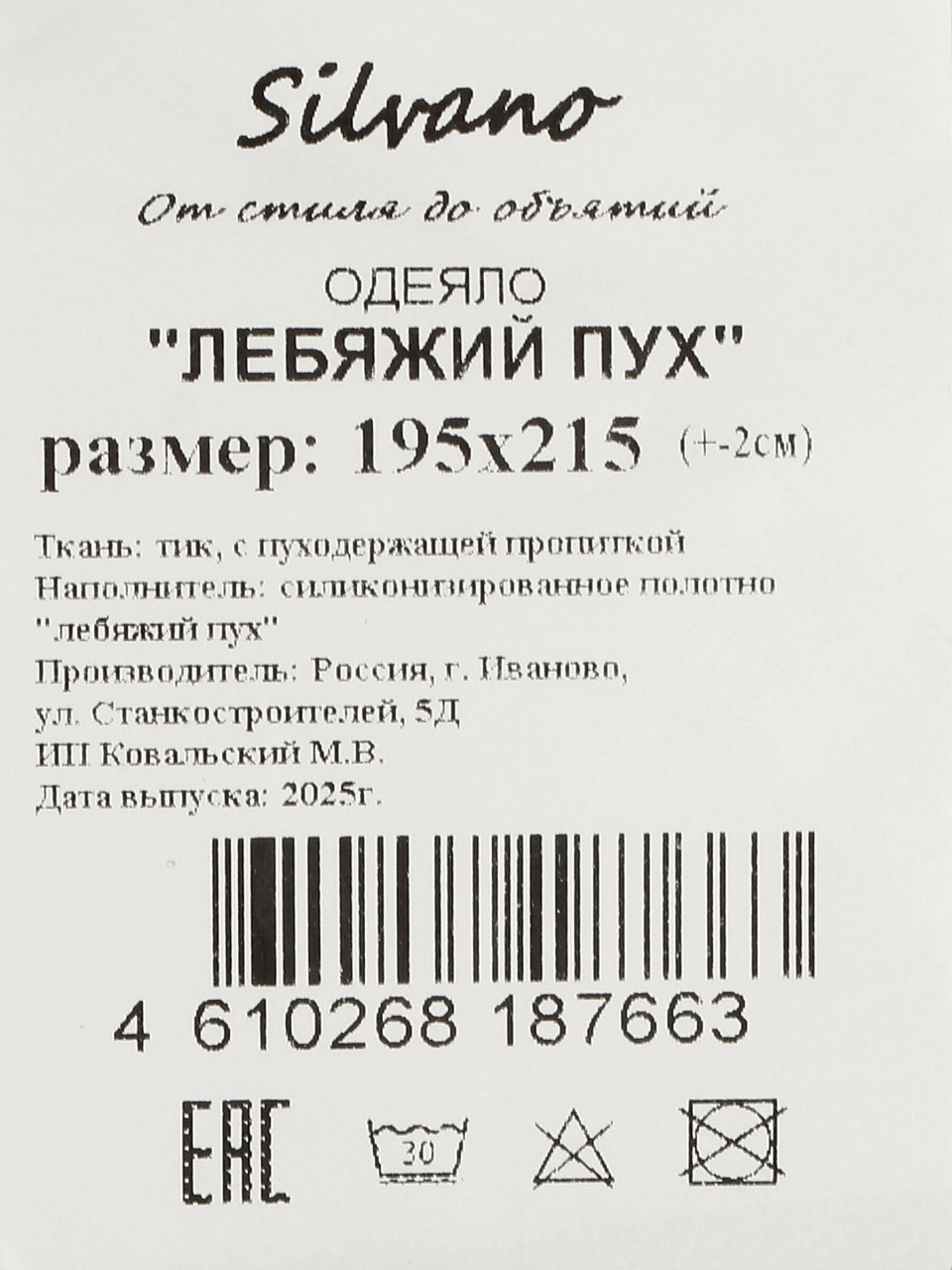 Часто спрашивают, чем отличается искусственный лебяжий пух от натурального: он полностью гипоаллергенный, не вызывает раздражения, не накапливает пыль и запахи, а также легко стирается в домашних условиях. Если вы ищете, какое одеяло выбрать для круглогодичного использования, Silvano подойдёт благодаря средней толщине и степени теплоты. Подходит ли для детей и людей с аллергией? Да, материал не вызывает реакций и рекомендован для семей с детьми.