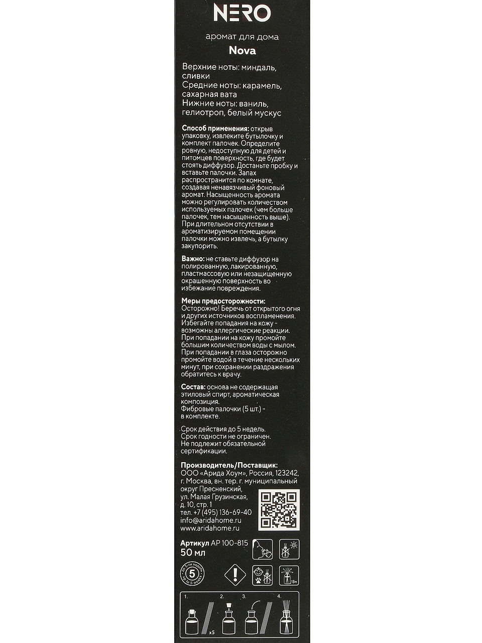 Вы можете приобрести «Аромадиффузор Arida Home, 50 мл, Nero Nova, АР 100-815» и другие товары в нашем интернет-магазине в Борисоглебске по низким ценам и с бесплатным самовывозом.